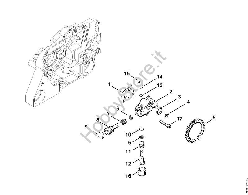 Ricambio Pompa olio Motoseghe a benzina (MS) MS 381 STIHL Contiene anche i ricambi da n. 2 a 15