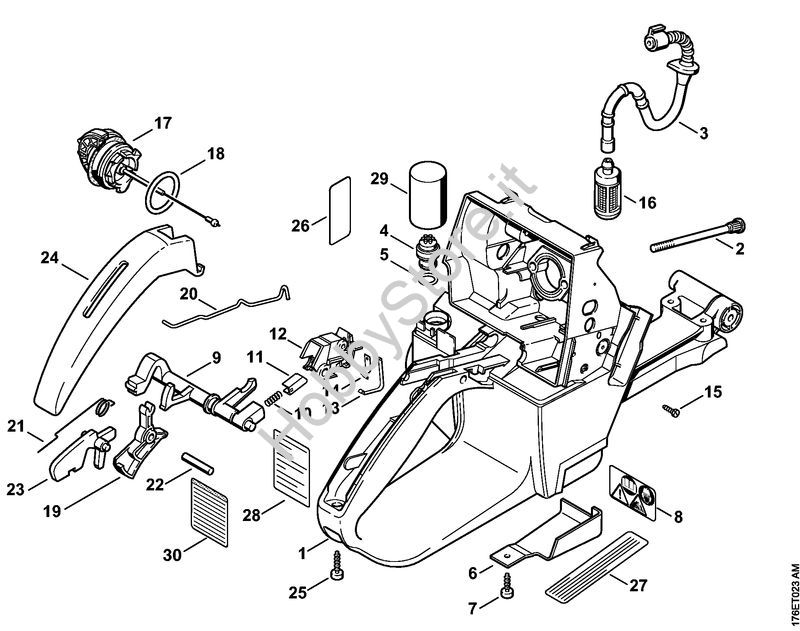 Ricambio Corpo serbatoio Motoseghe a benzina (MS) MS 460-D STIHL Contiene anche i ricambi nr. da 2 a 7, 17, 18