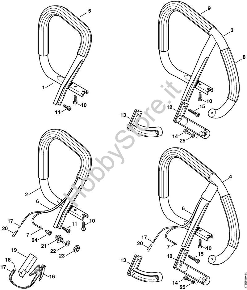 Ricambio Manico tubolare circolare Motoseghe a benzina (MS) MS 460-W STIHL Contiene anche i ricambi nr. 8, 9, 12, 14, 25