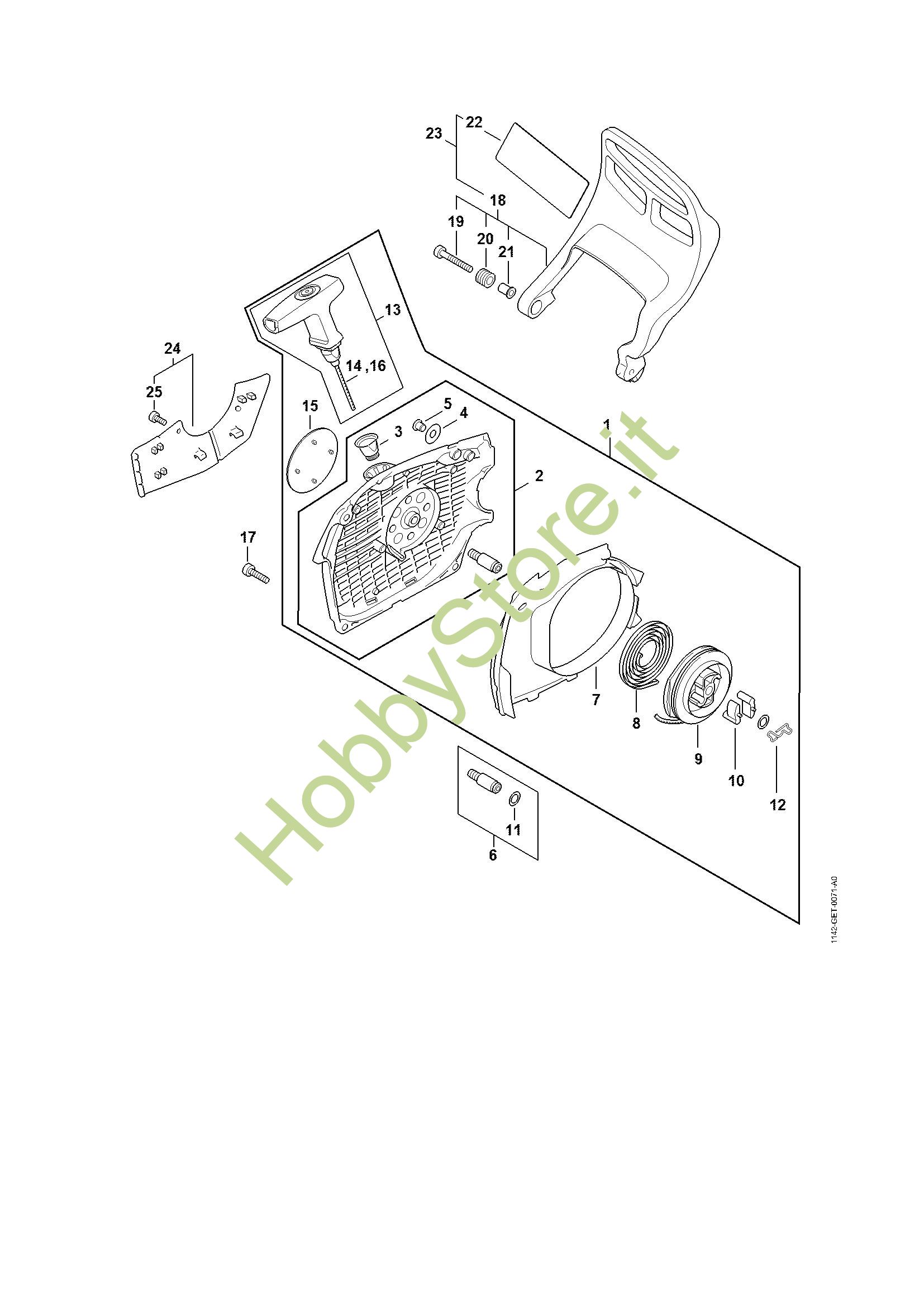 Ricambio Carenatura ventola con dispositivo di avviamento Motoseghe a benzina (MS) MS 462 STIHL Contiene anche i ricambi da n. 2 a 15