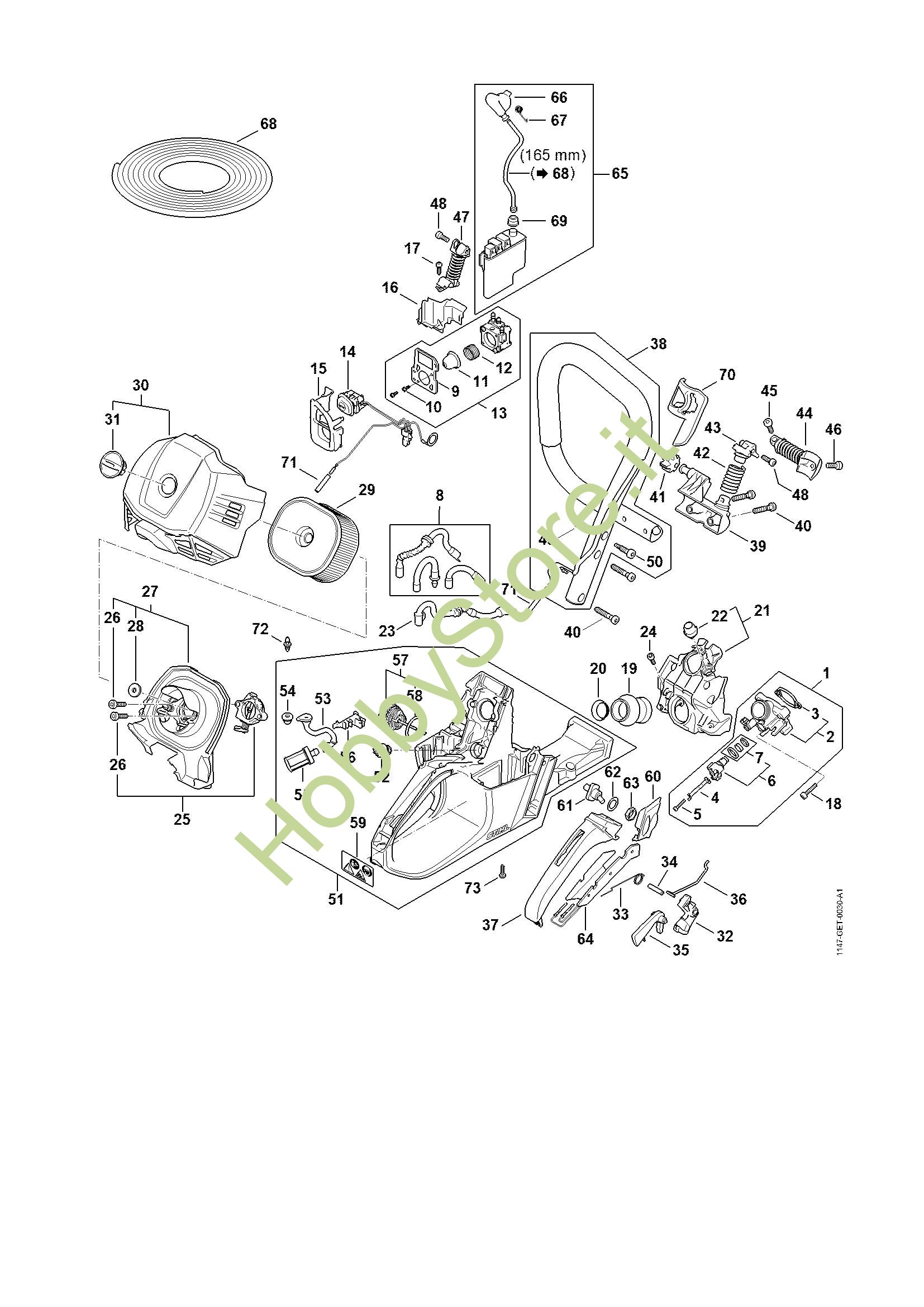 Ricambio Apparecchio di comando Motoseghe a benzina (MS) MS 500i-W STIHL Contiene anche i ricambi da n. 66 a 69