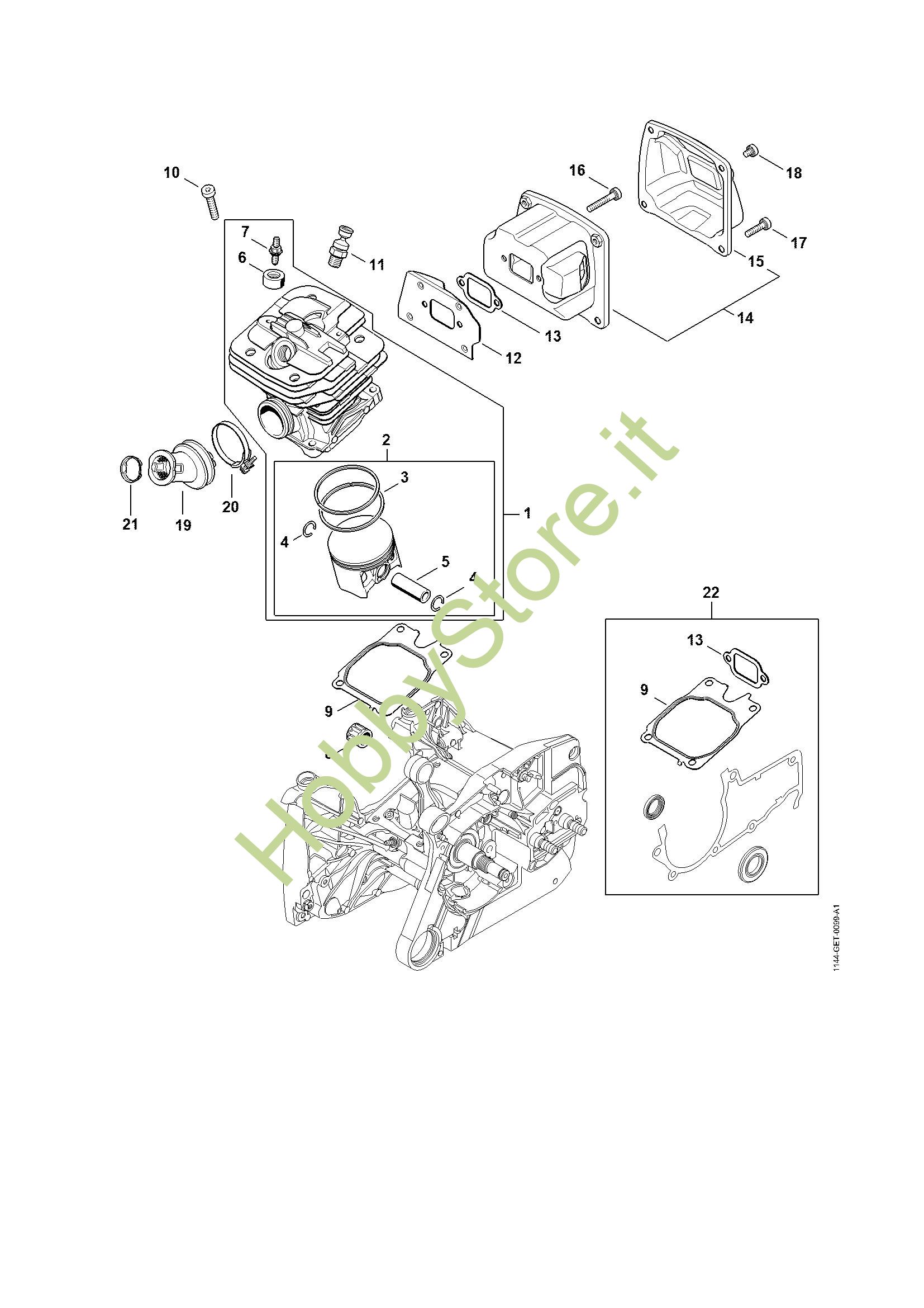 Cilindro, silenziatore Motoseghe a benzina (MS) MS 651 della marca STIHL