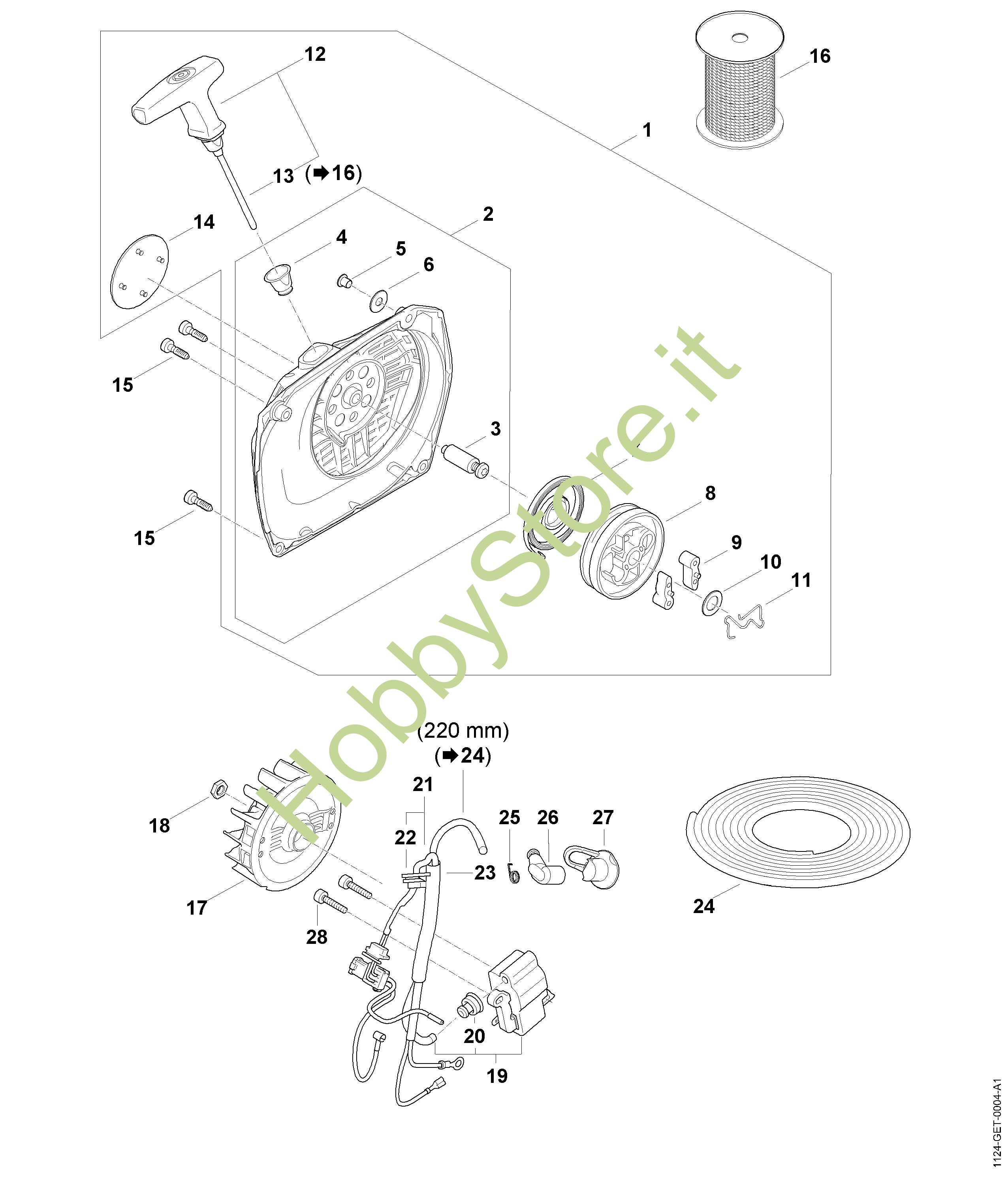 Dispositivo avviamento, impianto di accensione Motoseghe a benzina (MS) MS 881 della marca STIHL