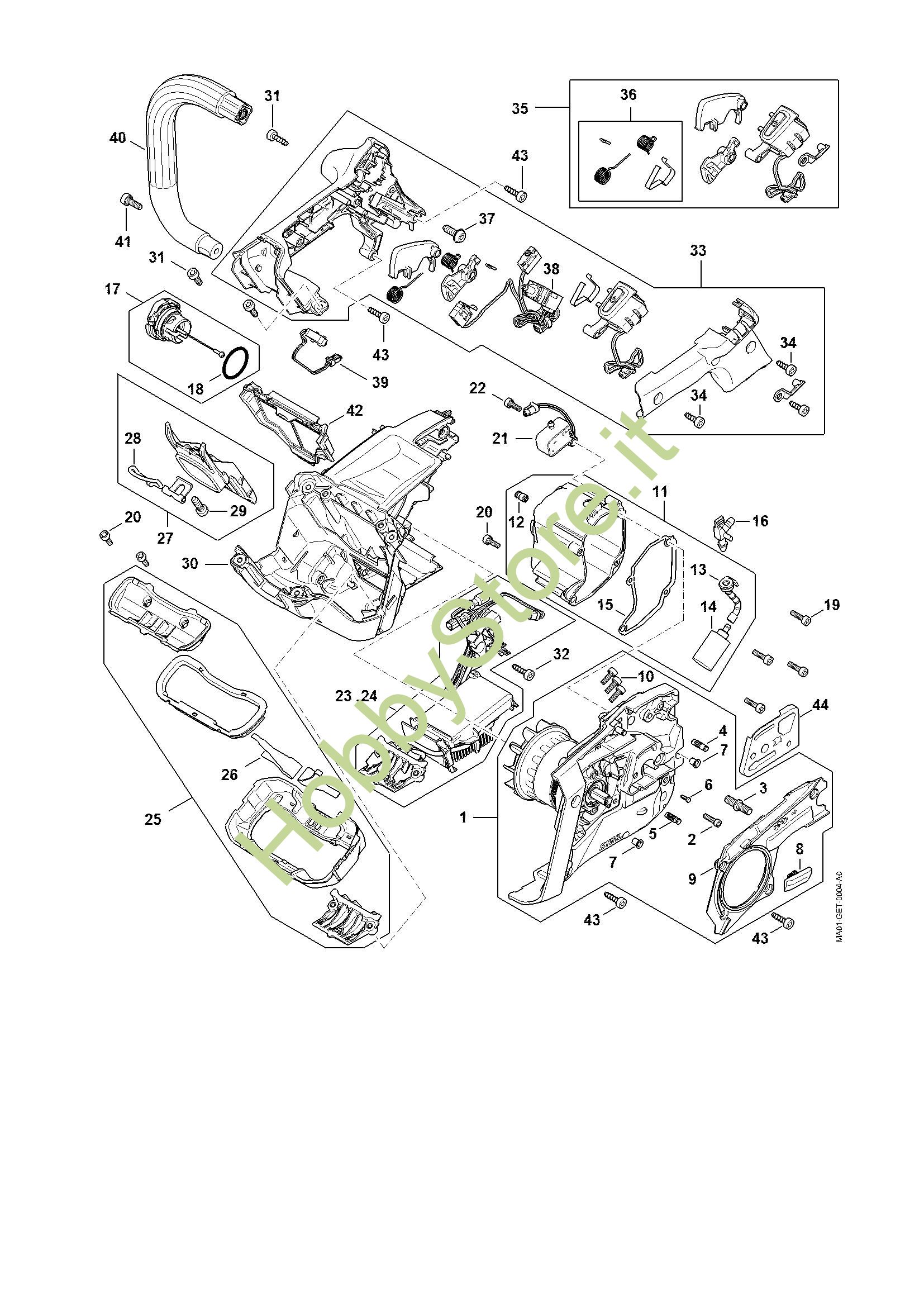 Ricambio Corpo impugnatura Motoseghe a batteria (MSA) MSA 220.0 T STIHL Contiene anche i ricambi da n. 34 a 38
