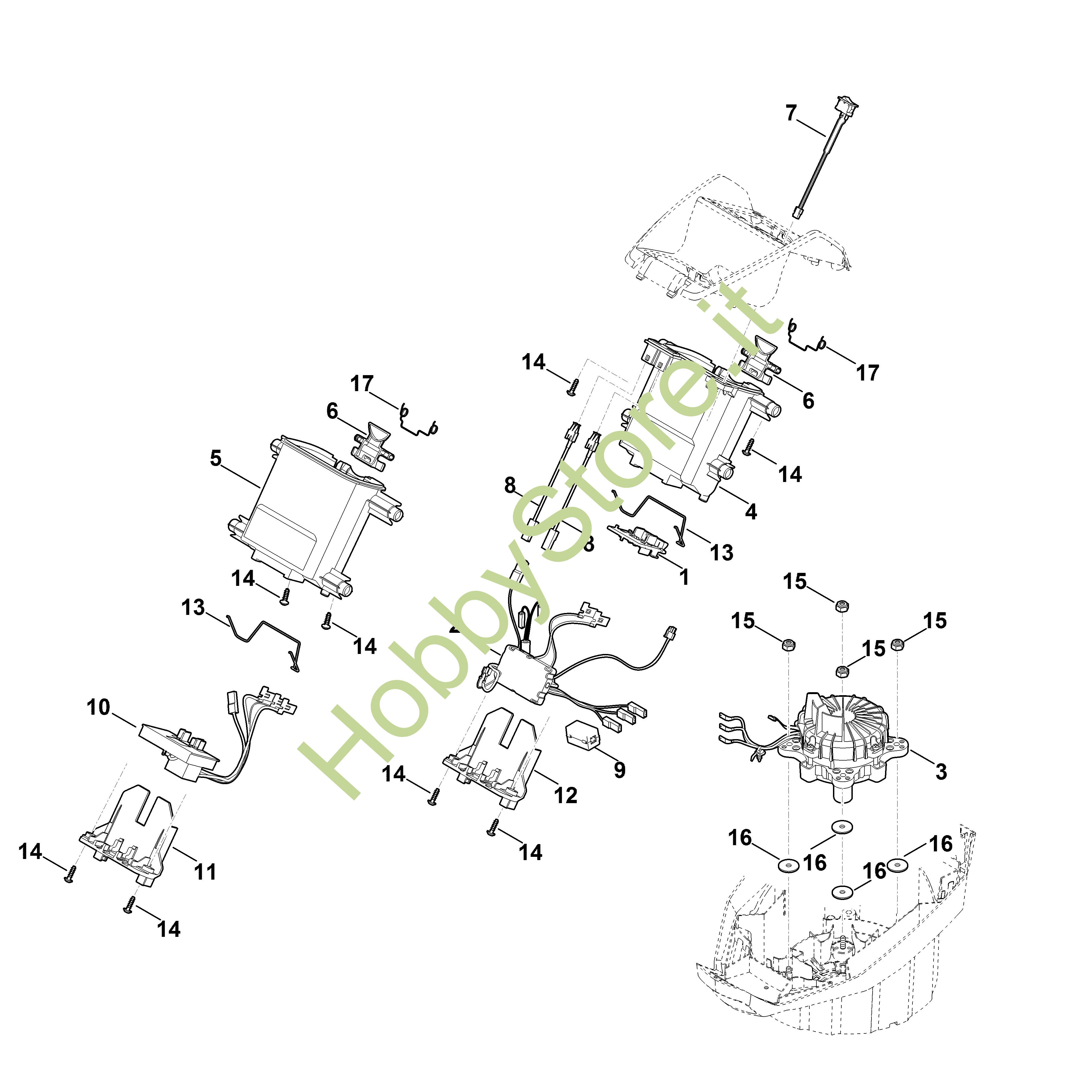 C - Supporto batteria, sistema elettronico, motore elettrico MVP MVP 850.0 S della marca STIHL