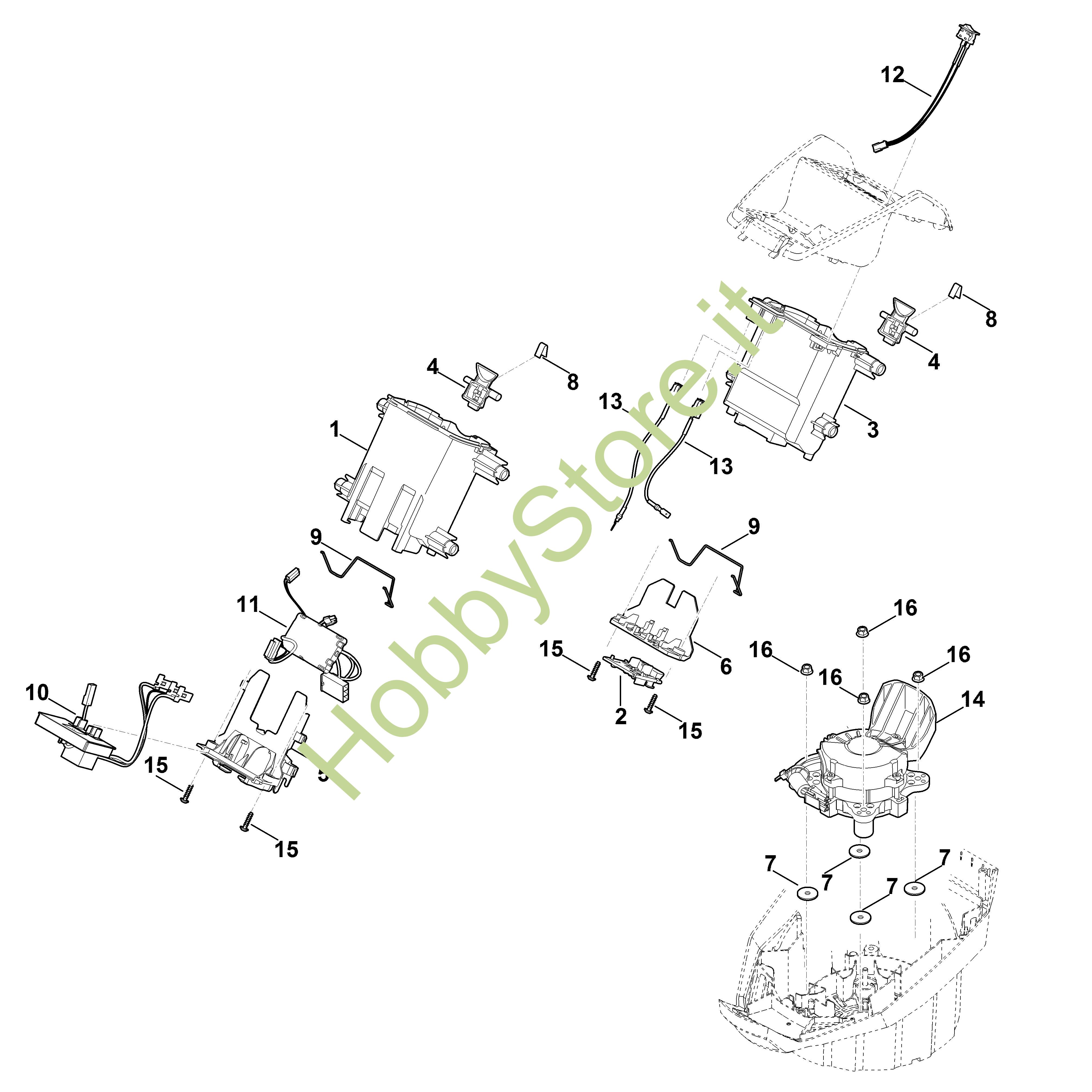 C - Supporto batteria, sistema elettronico, motore elettrico MVP MVP 850.1 S della marca STIHL