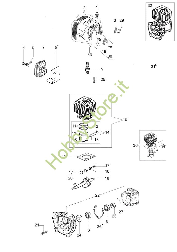 Ricambio Short block Da abbinare ai Motore PPX 270 Potatore della marca Oleo-Mac Richiede pezzi:1