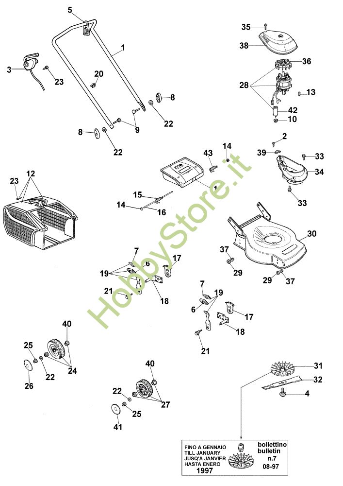 In caso di ordine di ricambi per il tuo prodotto GE 43 Rasaerba elettrico della Oleo-Mac, per permettere al nostro staff di spedirti i ricambi corretti, inserire, nella pagina finale del carrello nel campo Note varie, anno della macchina e, se disponibile, il suo numero di matricola.