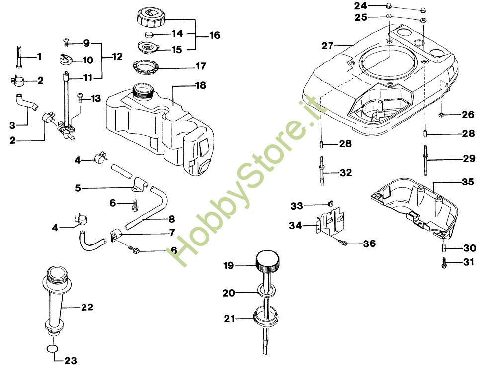 Motore, serbatoio e cofanatura LUX 47 KV Rasaerba