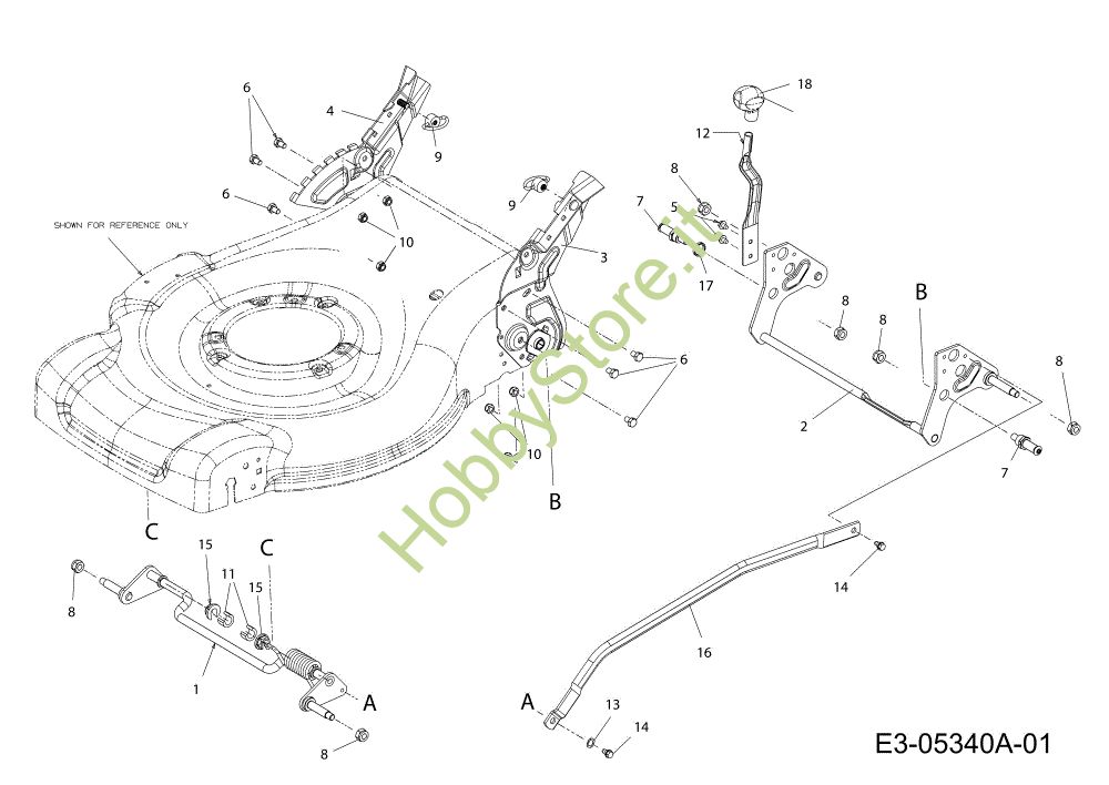 Ricambio Leva Sistema altezza di taglio G 55 VBX 4-IN-1 Cat. 2011 Rasaerba della marca Oleo-Mac Richiede pezzi:1
