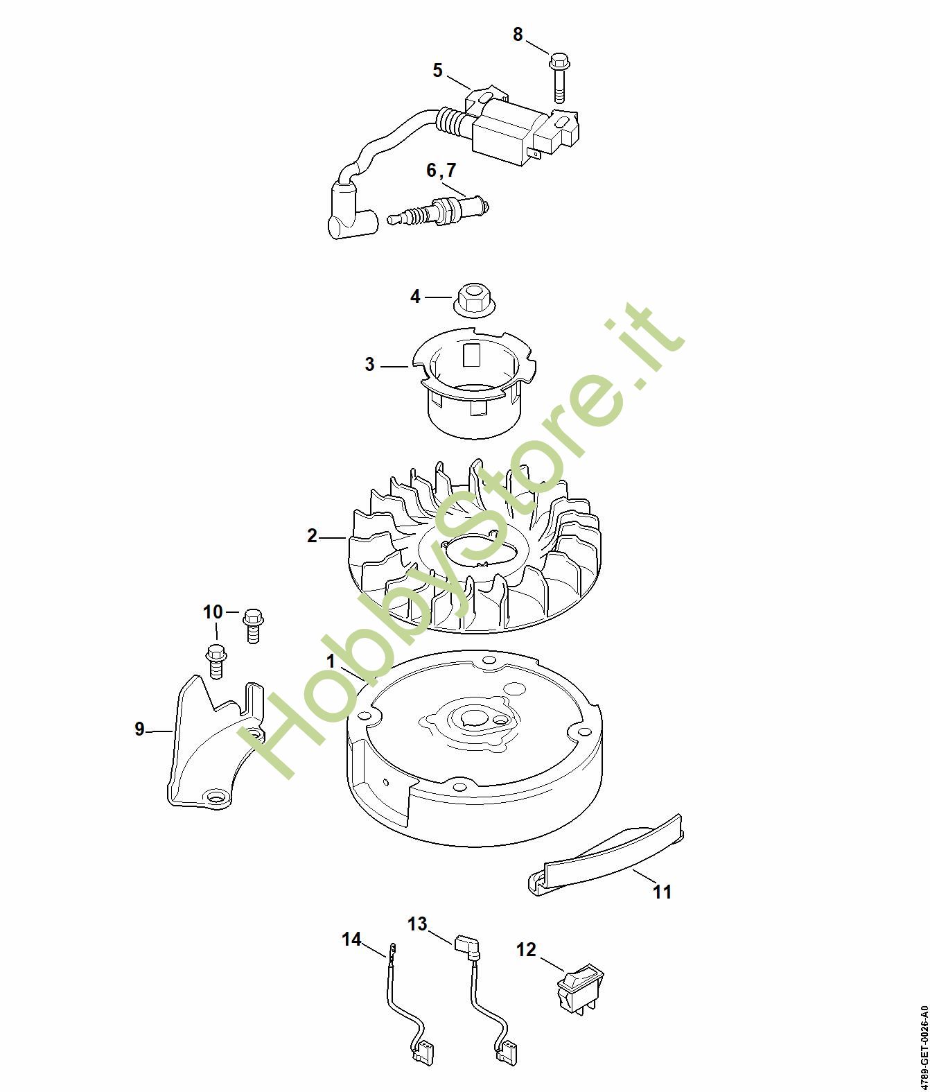 Impianto di accesione, ventola Idropulitrice a benzina (RB) RB 200 della marca STIHL