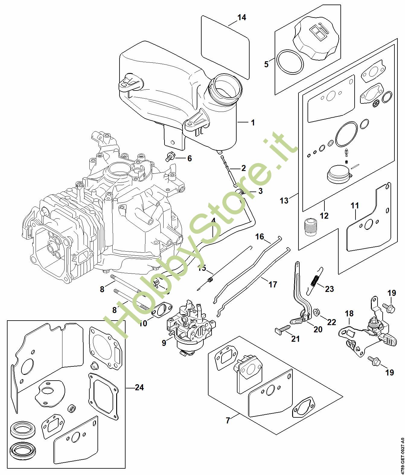 Serbatoio carburante, Carburatore, Comando gas Idropulitrice a benzina (RB) RB 200 della marca STIHL