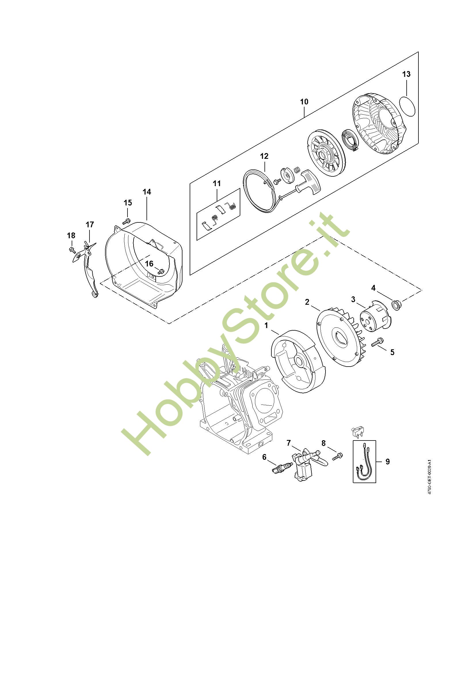 Impianto di accesione, ventola, Dispositivo di avviamento Idropulitrice a benzina (RB) RB 400 Dirt Boss della marca STIHL