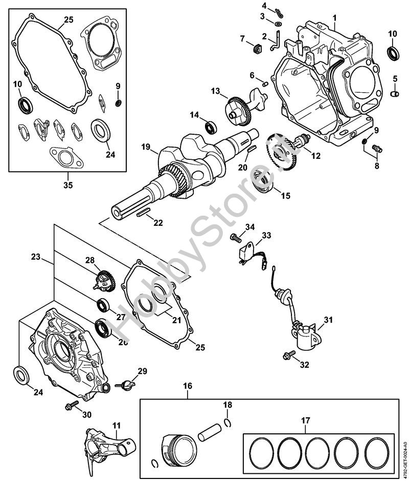 Carter albero a gomito, pistone, Albero a gomito, Sistema di lubrificazione Idropulitrice a benzina (RB) RB 800 della marca STIHL