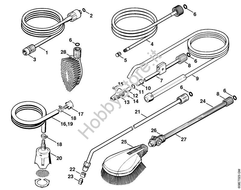 Ricambio Corredo di pulizia tubo 10 m Idropulitrice elettrica (RE) RE 101 K STIHL Contiene anche i ricambi n. 5 e 6