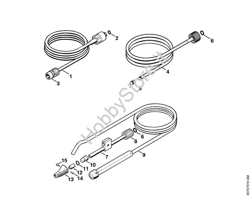 Ricambio Corredo di pulizia tubo 10 m Idropulitrice elettrica (RE) RE 106 KM STIHL Contiene anche i ricambi n. 5 e 6
