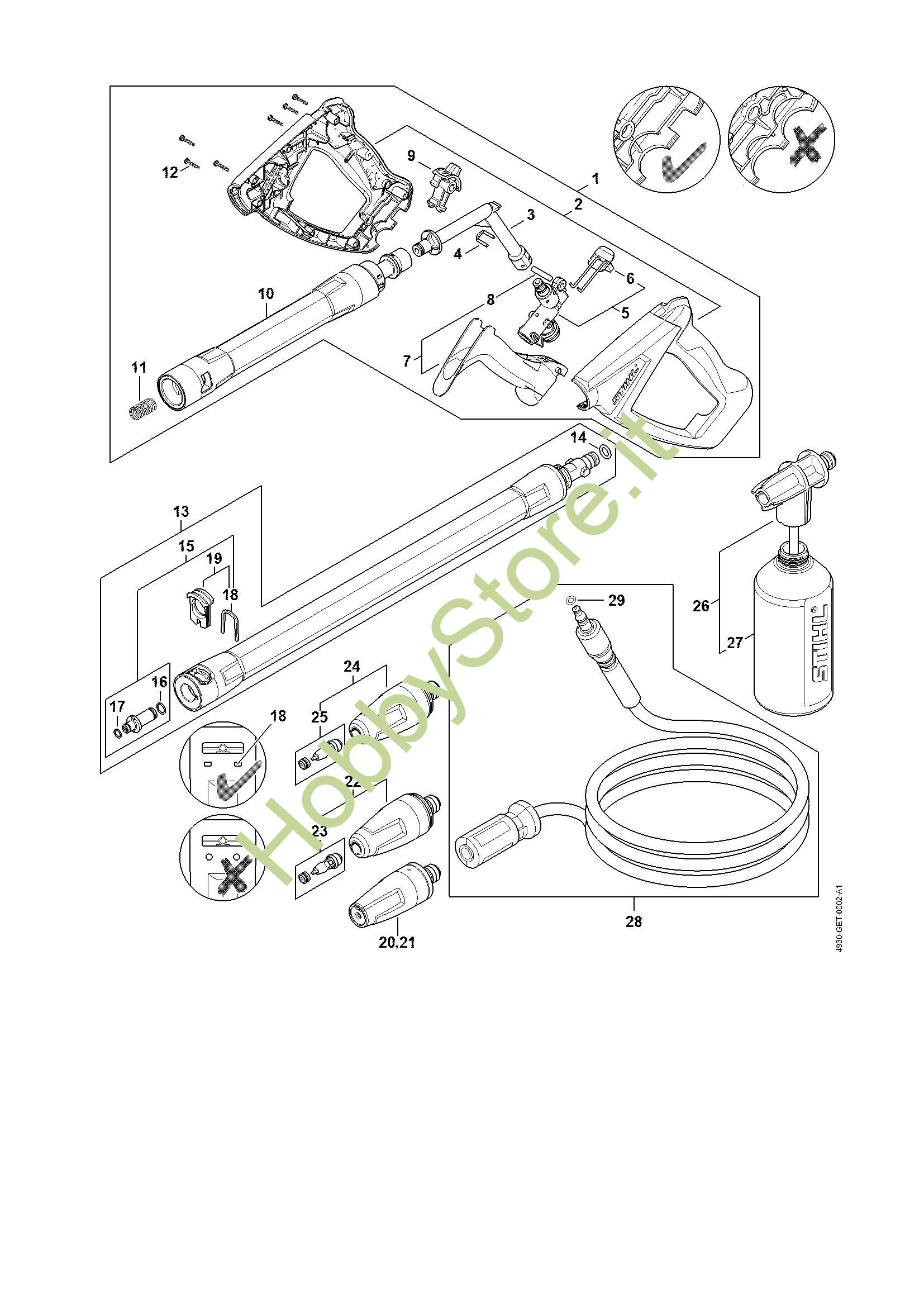 Ricambio Gruppo spruzzatore Idropulitrice elettrica (RE) RE 110 STIHL Contiene anche i ricambi n. 27