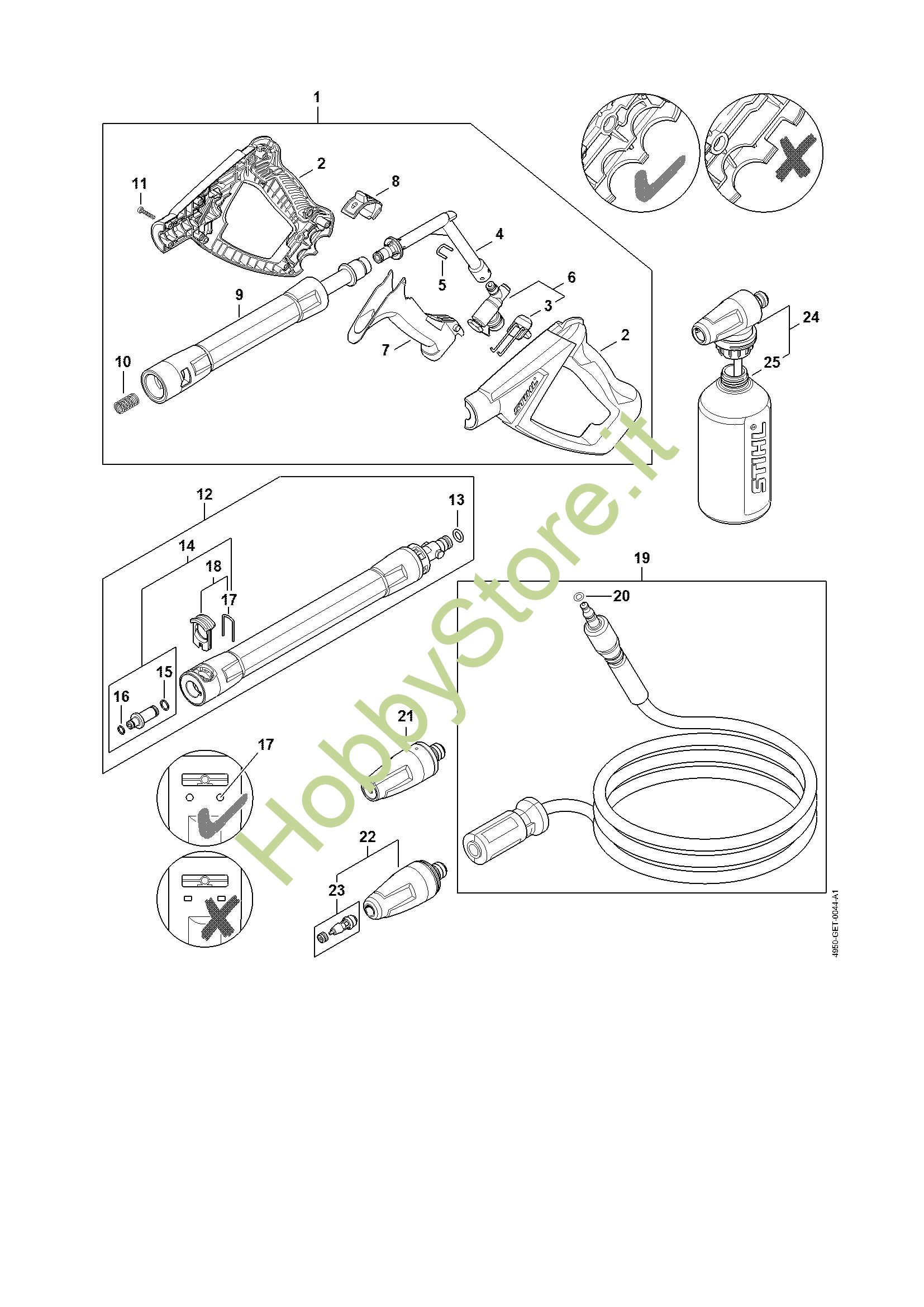 Ricambio Ugello Idropulitrice elettrica (RE) RE 120 STIHL Contiene anche i ricambi da n. 15 a 17