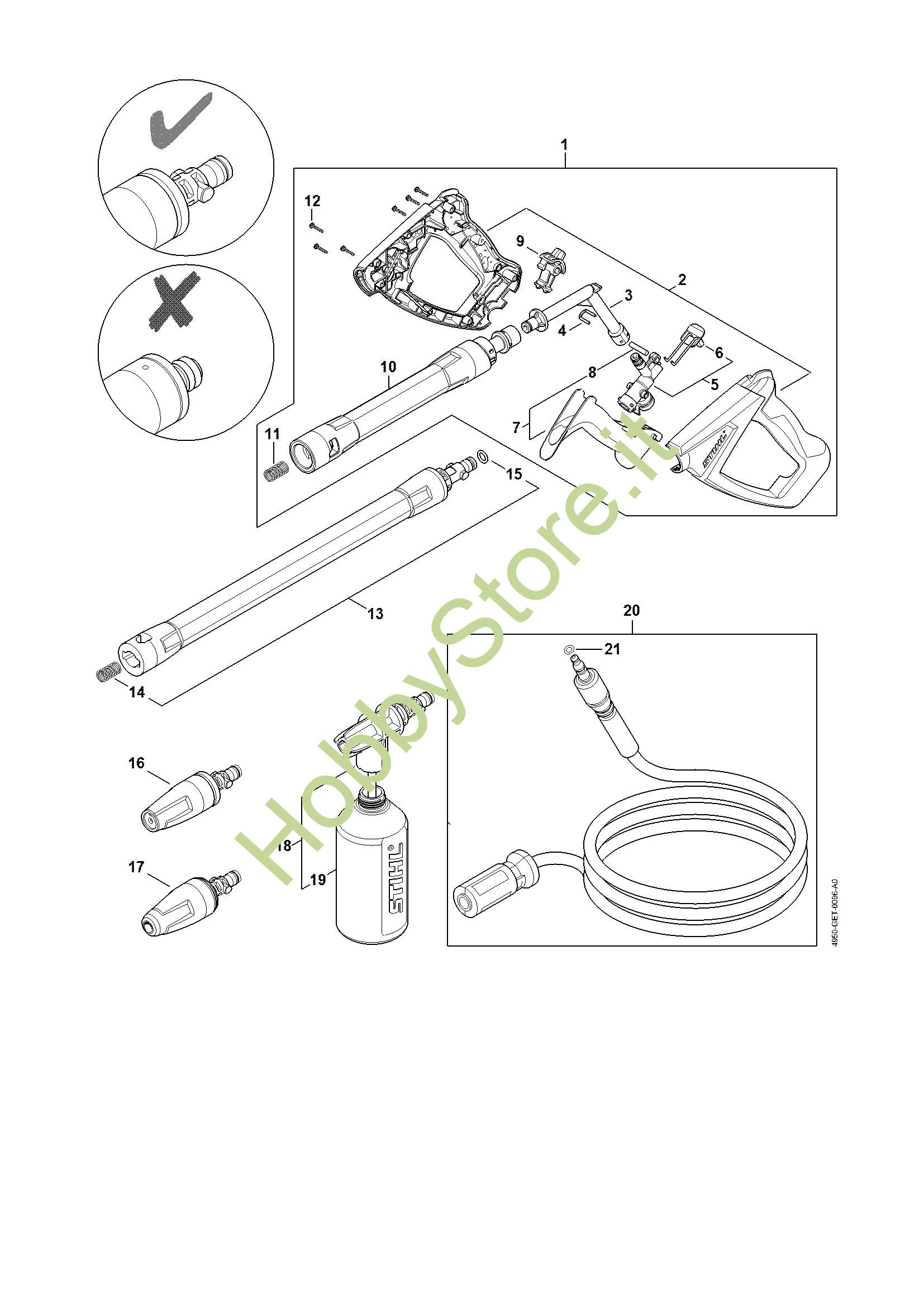 Ricambio Gruppo spruzzatore Idropulitrice elettrica (RE) RE 120 STIHL Contiene anche i ricambi n. 19