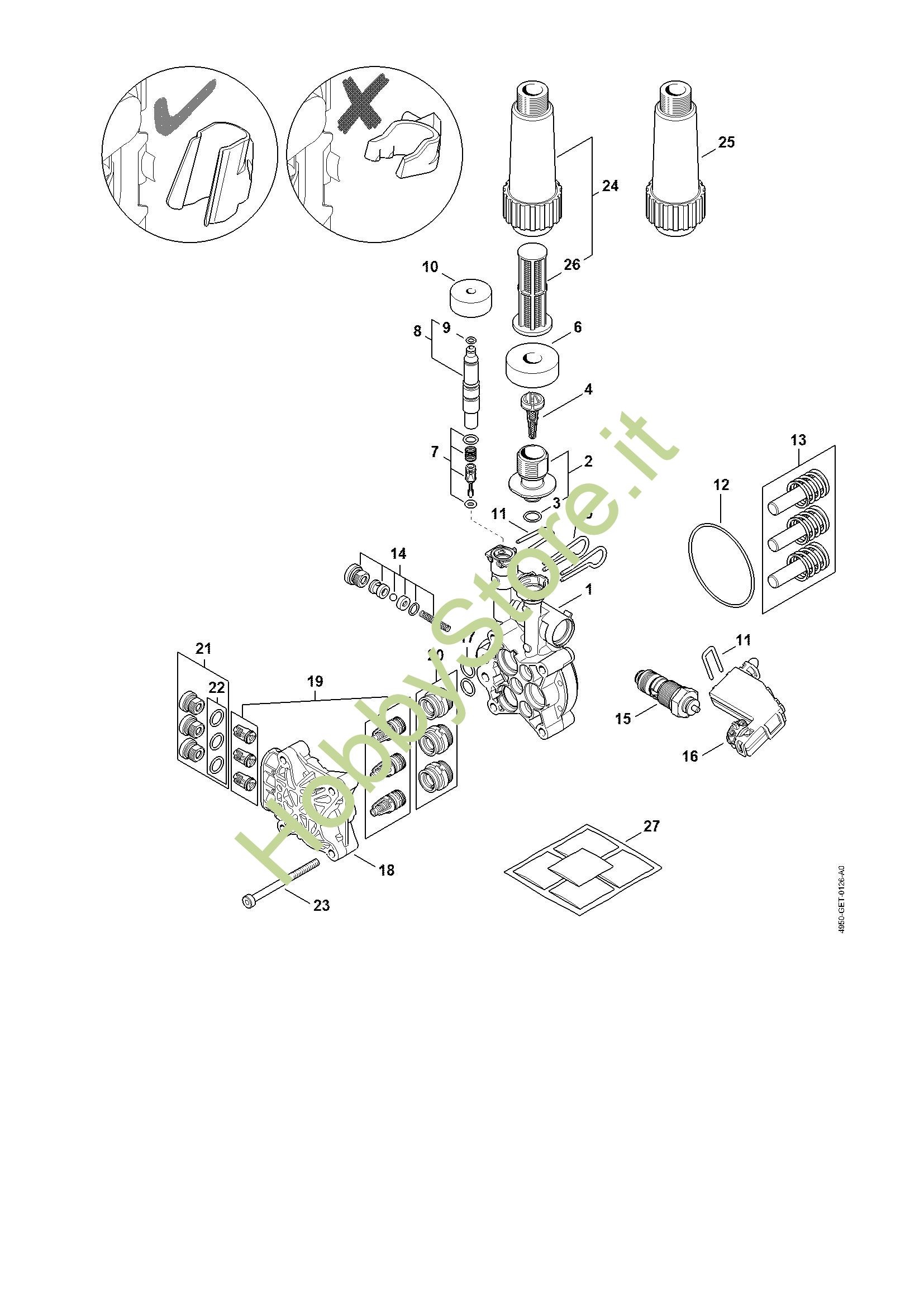 Pompa, blocco valvole Idropulitrice elettrica (RE) RE 120 della marca STIHL
