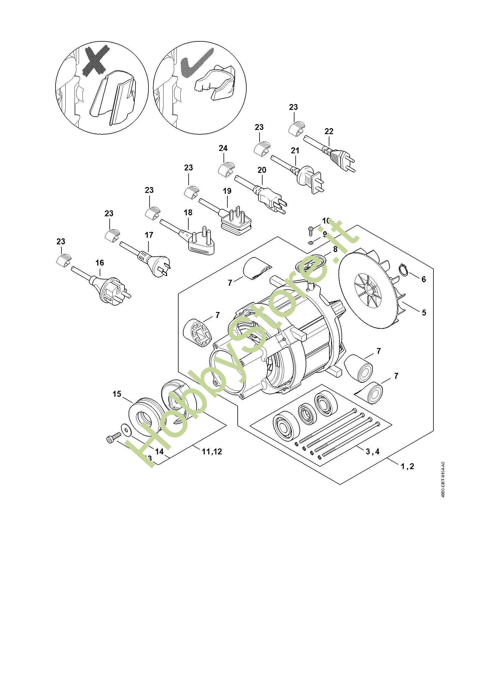 Ricambio Elettromotore 220-240V/50 Hz, 2,1/2,3 kW Idropulitrice elettrica (RE) RE 130 PLUS STIHL Contiene anche i ricambi nr. 3 e da 5 a 8