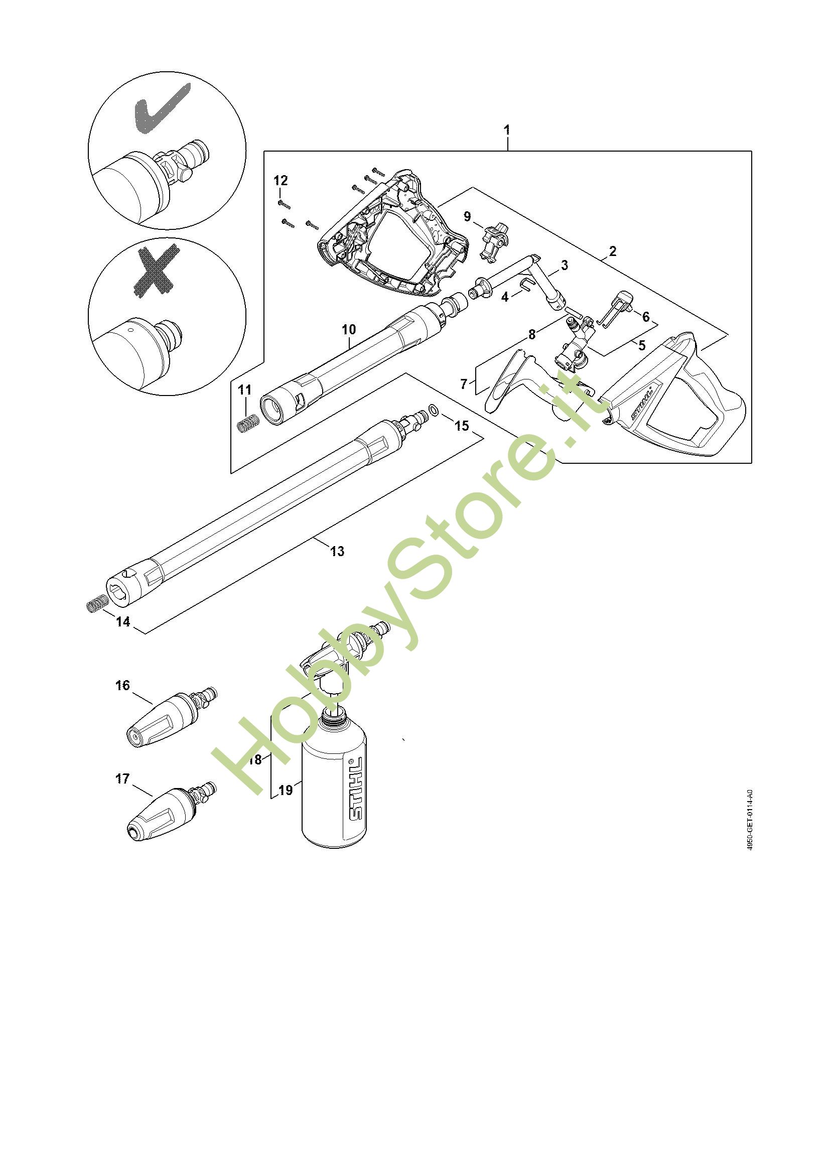 Ricambio Gruppo spruzzatore Idropulitrice elettrica (RE) RE 130 PLUS STIHL Contiene anche i ricambi n. 19