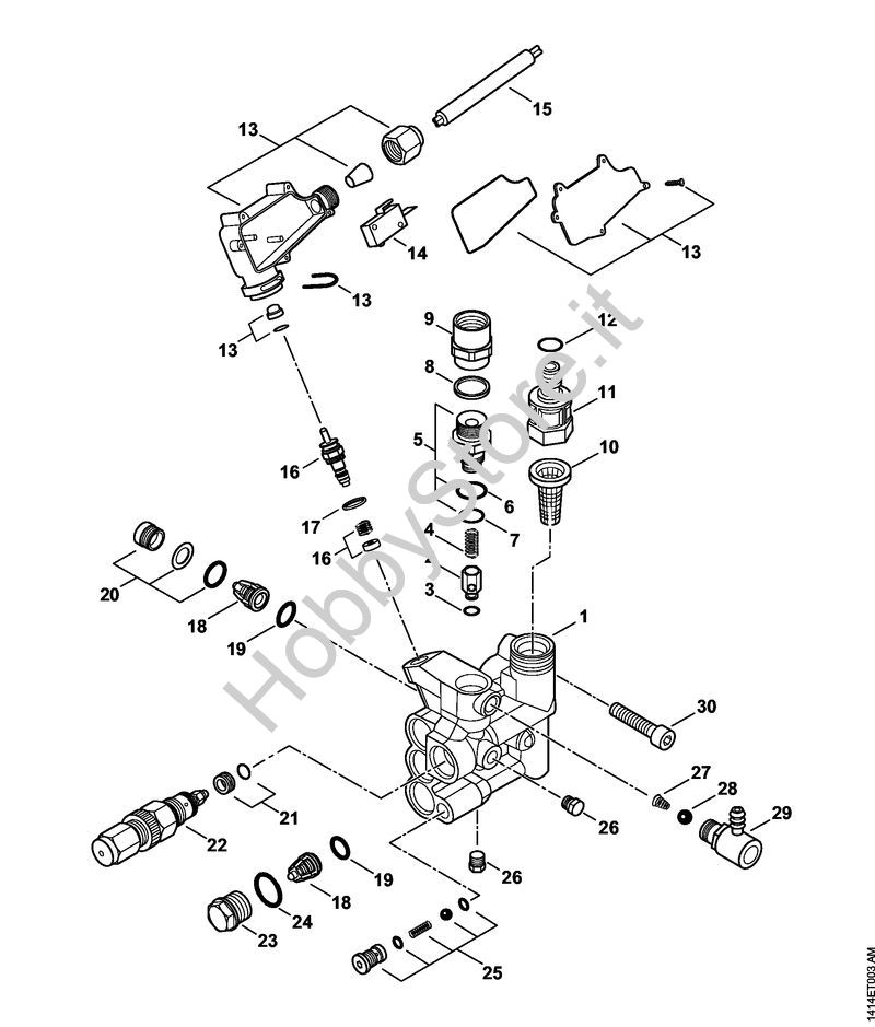 Blocco valvole, pistoncino di comando, allacciamento d'agua Idropulitrice elettrica (RE) RE 230 della marca STIHL