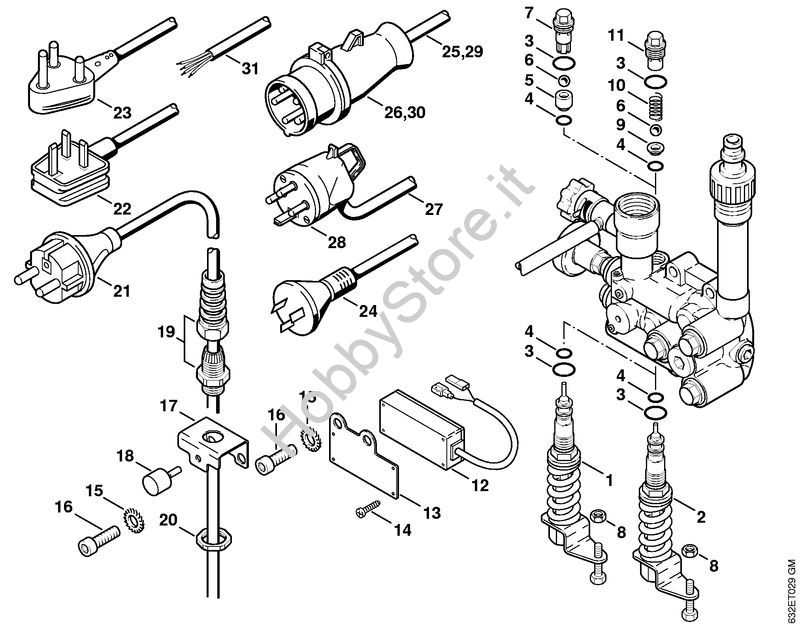 Pistone di comando, cavo di collegamento Idropulitrice elettrica (RE) RE 280 K della marca STIHL