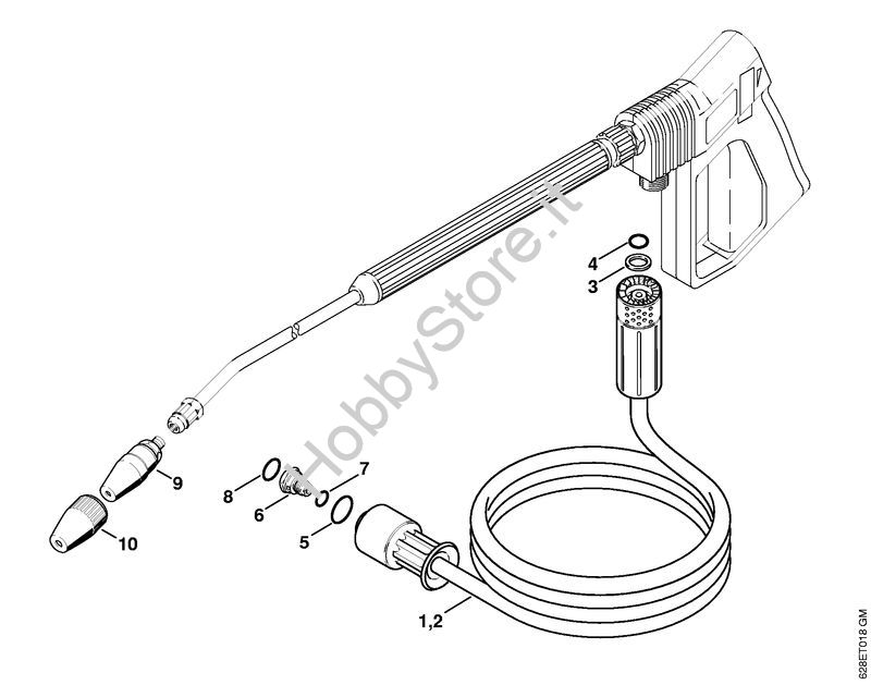 Tubo flessibile alta pressione, ugello rotore Idropulitrice elettrica (RE) RE 560 W della marca STIHL
