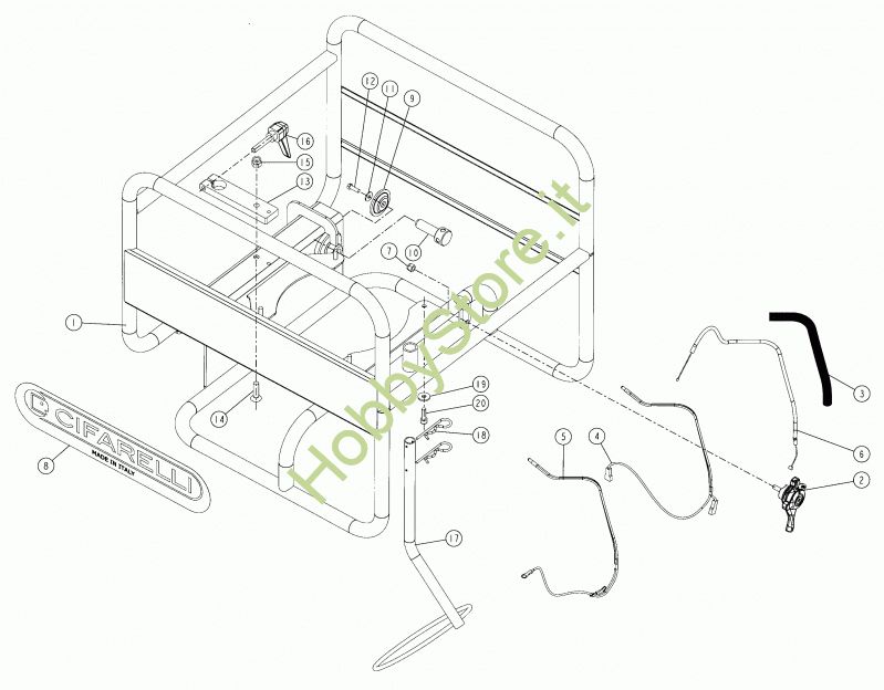 Ricambio 2 Leva gas + stop aspiratore V77S cpl Telaio V1200PK della marca CIFARELLI Contiene anche i ricambi 2, 7