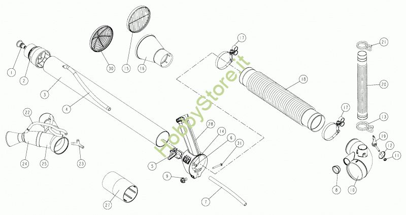 Ricambio 28 Impugnatura per tubo D.65 cpl Tubi prolunga e gomito prodotto dal 15/06/2010 della marca CIFARELLI Contiene anche i ricambi 9, 28, 31, per serie / for series L80, L3, L3V