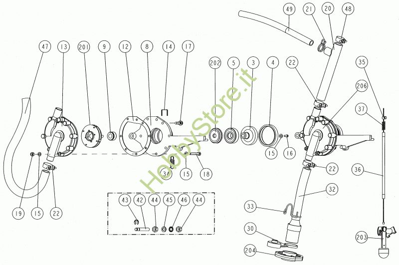Ricambio 999 Gruppo comando pompa Pompa riempimento o spinta prodotto dal 30/04/2009 M88AF della marca CIFARELLI Contiene anche i ricambi dal 5 al37, 203
