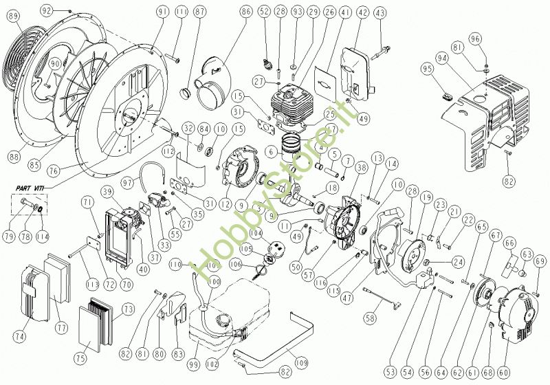 Ricambio 999 Serbatoio miscela M88BL cpl Motoventola M88BL prodotto dal 24/08/99 > M88BLU della marca CIFARELLI Contiene anche i ricambi dal 9 al106, 110