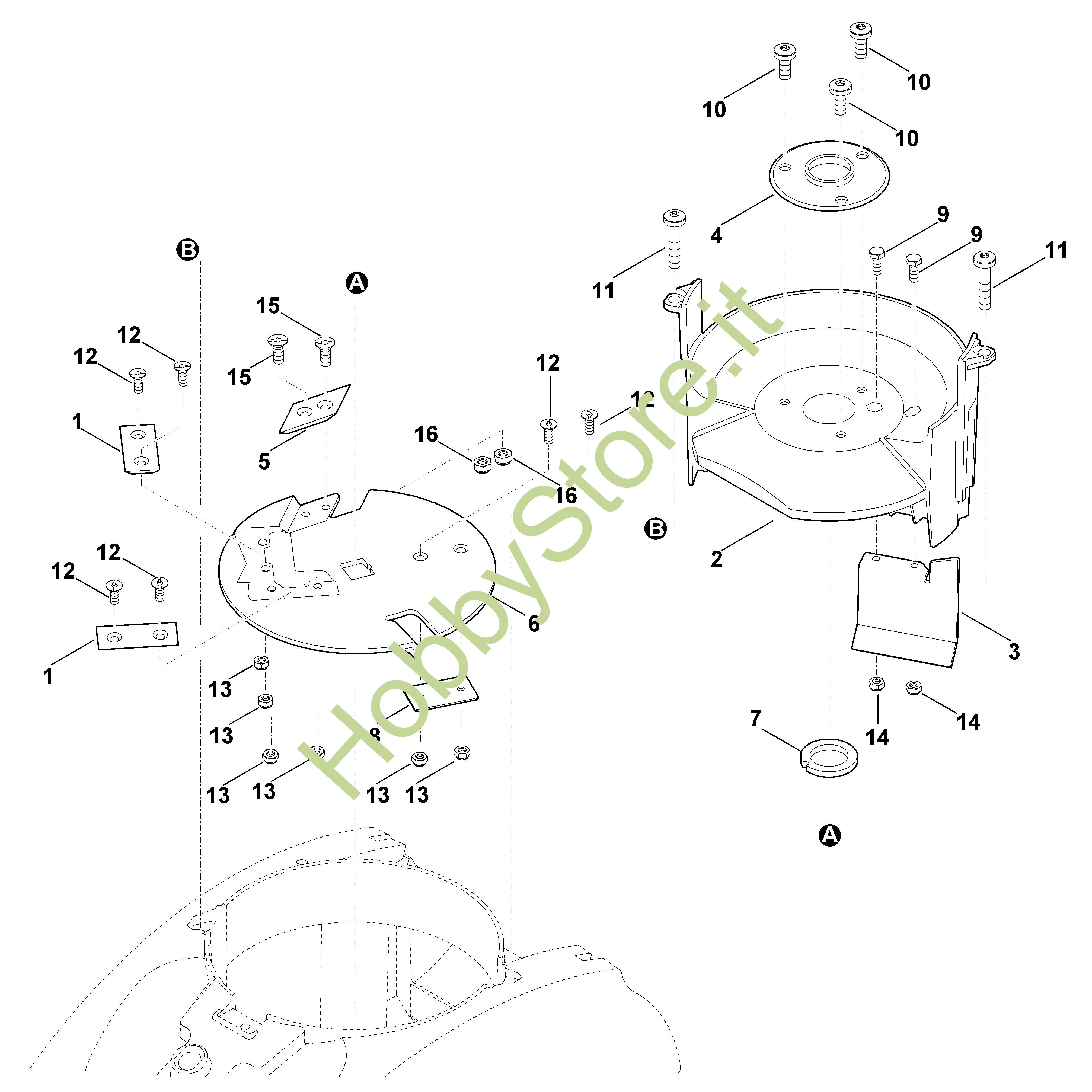 ATTENZIONE: Se nella lista sotto non compaiono i relativi ricambi riportati nell'esploso