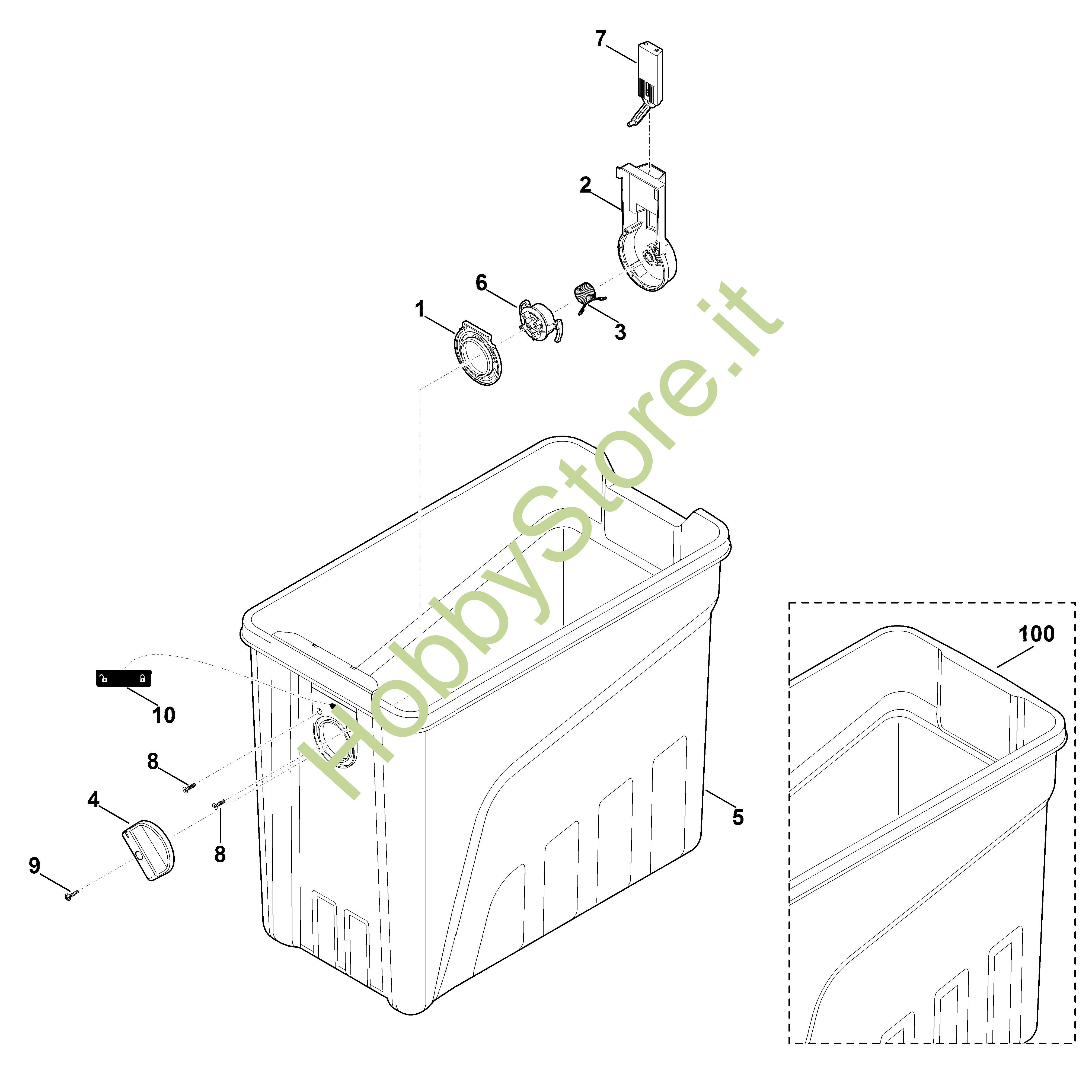ricambio originale Contenitore per trituratore GE GE 140.0 L Viking Contiene anche i ricambi nr. da 1 a 4,6 a 10
