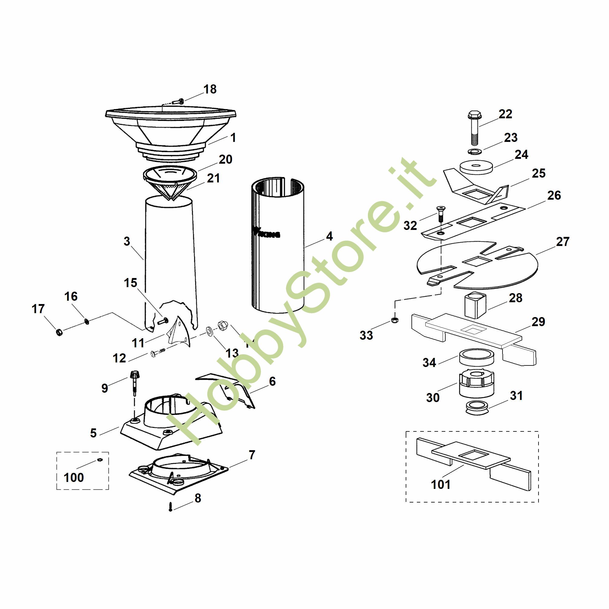 ATTENZIONE: Se nella lista sotto non compaiono i relativi ricambi riportati nell'esploso