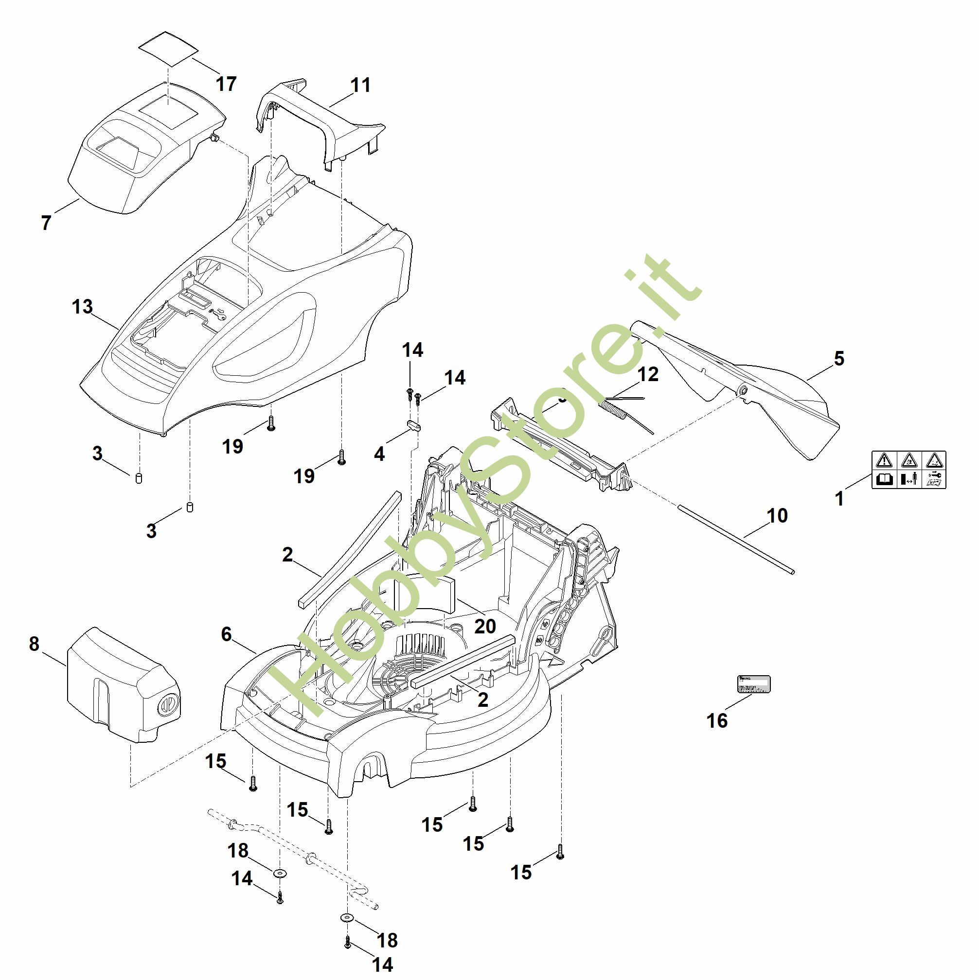 ricambio originale Cofano motore compl. MA MA 235.0 Viking Contiene anche i ricambi nr. 3,7,11,17,19