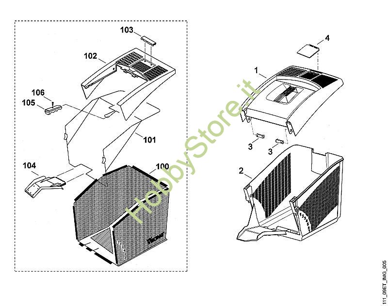 ricambio originale Cesto raccolta erba compl. MB MB 500 Viking Contiene anche i ricambi da n. 1 a 3