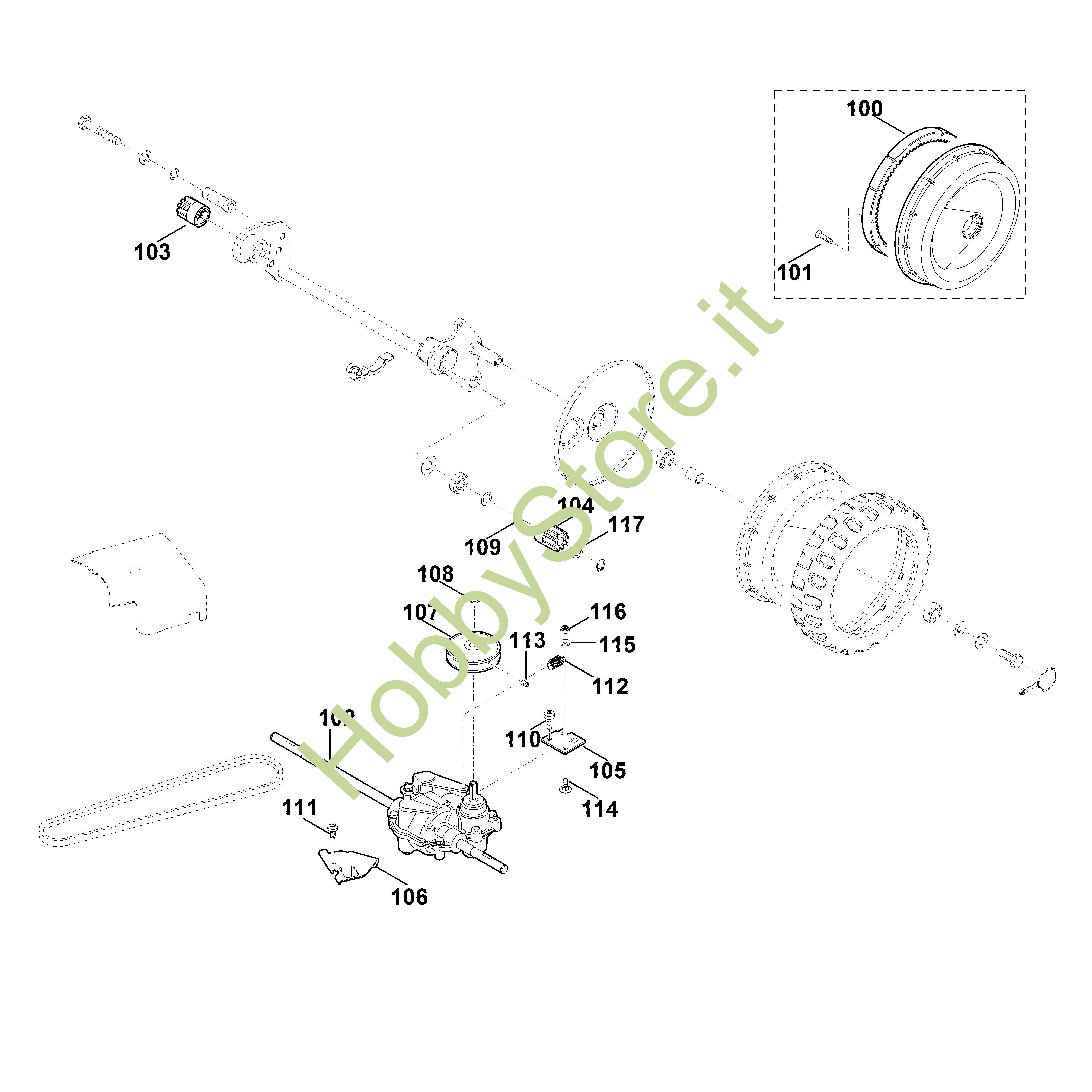 107 Puleggia per cinghia trapezoidale compl.