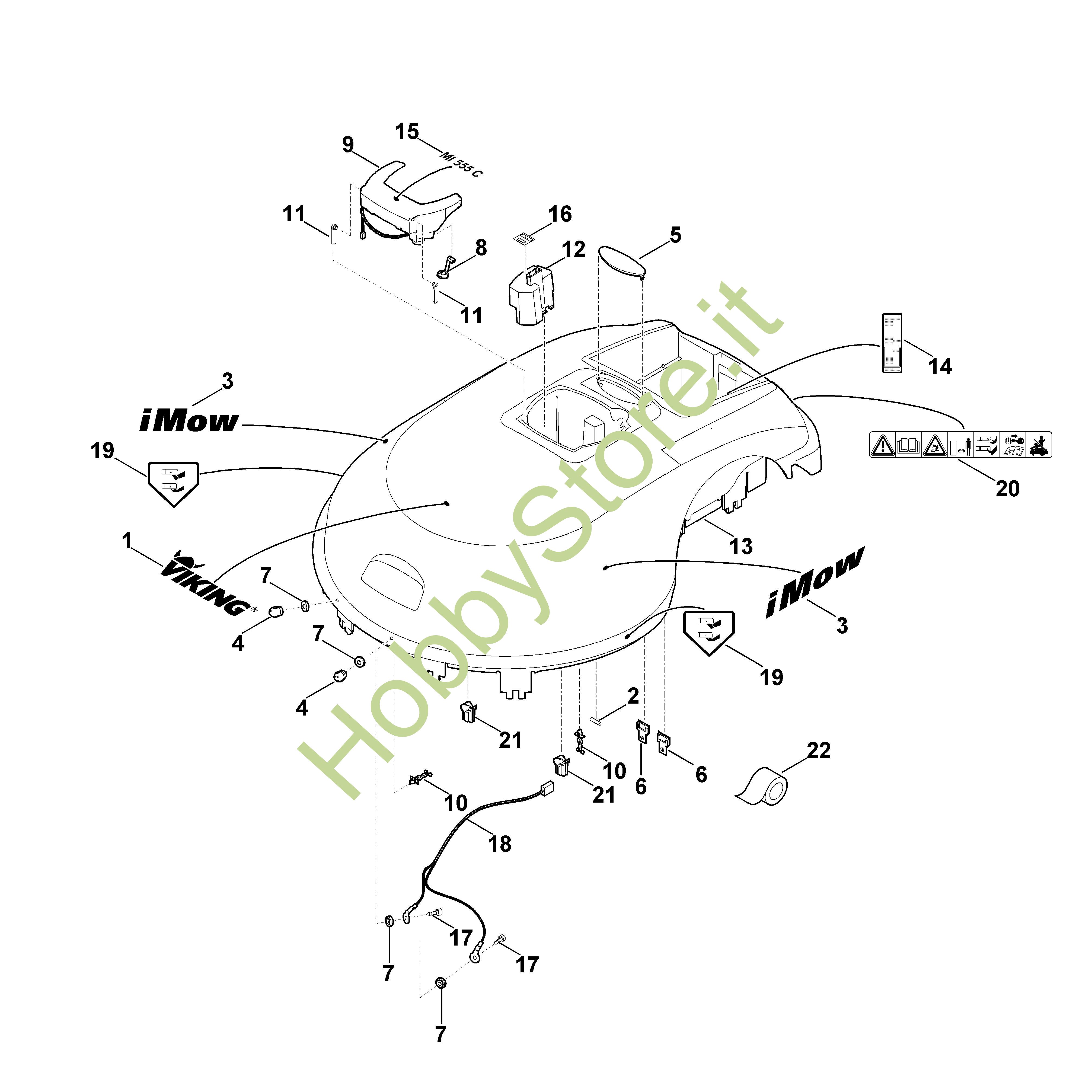 ricambio originale Cofano di protezione MI MI 555.0 C Viking Contiene anche i ricambi nr. da 1 a 5,10,14,18 a 20