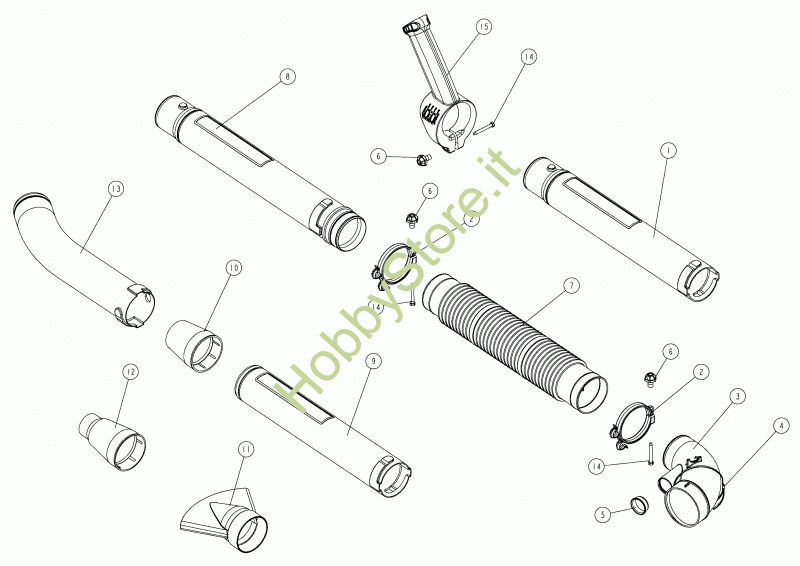 Ricambio 15 Impugnatura per tubo D.65 cpl Tubi prolunga e gomito prodotto dal 01/07/2010 BL3 della marca CIFARELLI Contiene anche i ricambi 6, 14, 15 solo per modelli / only for models