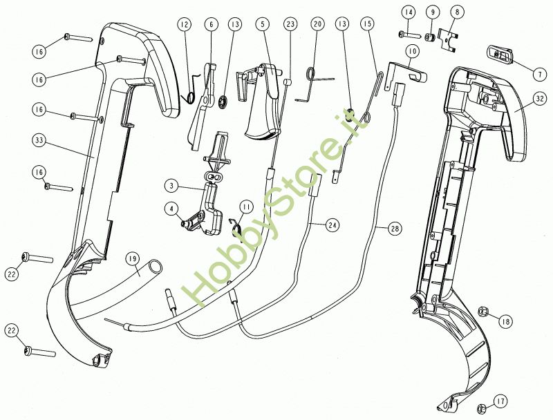 Ricambio 33 Semiguscio DX per impugnatura Ø85 cpl Impugnatura comandi soffiat. dal 17/06/2012BL6S della marca CIFARELLI Contiene anche i ricambi 6, 12, 13, 33