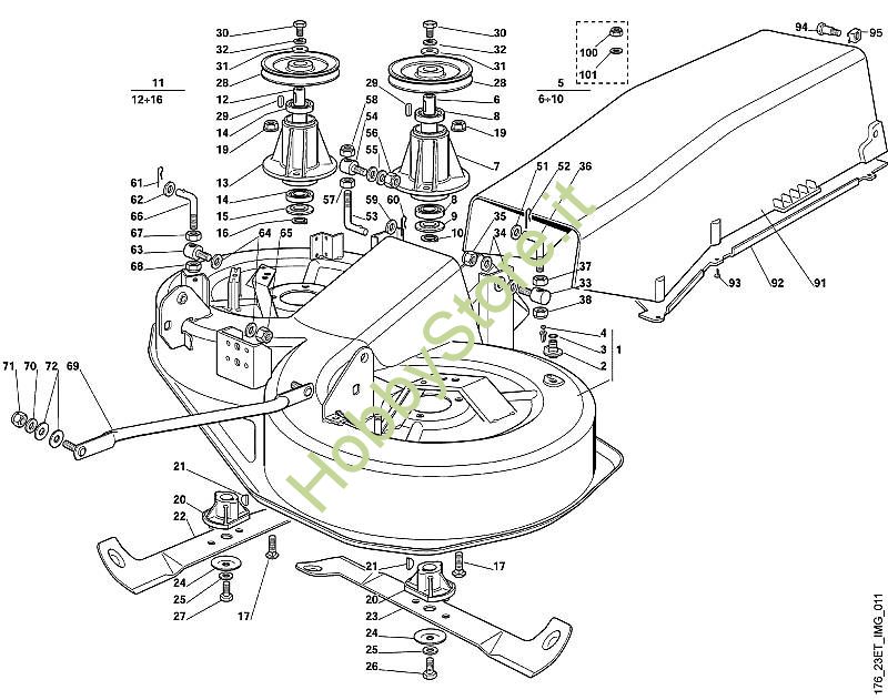 ricambio originale Albero lama sinistro compl. MT MT 580 Viking Contiene anche i ricambi da n. 6 a 10