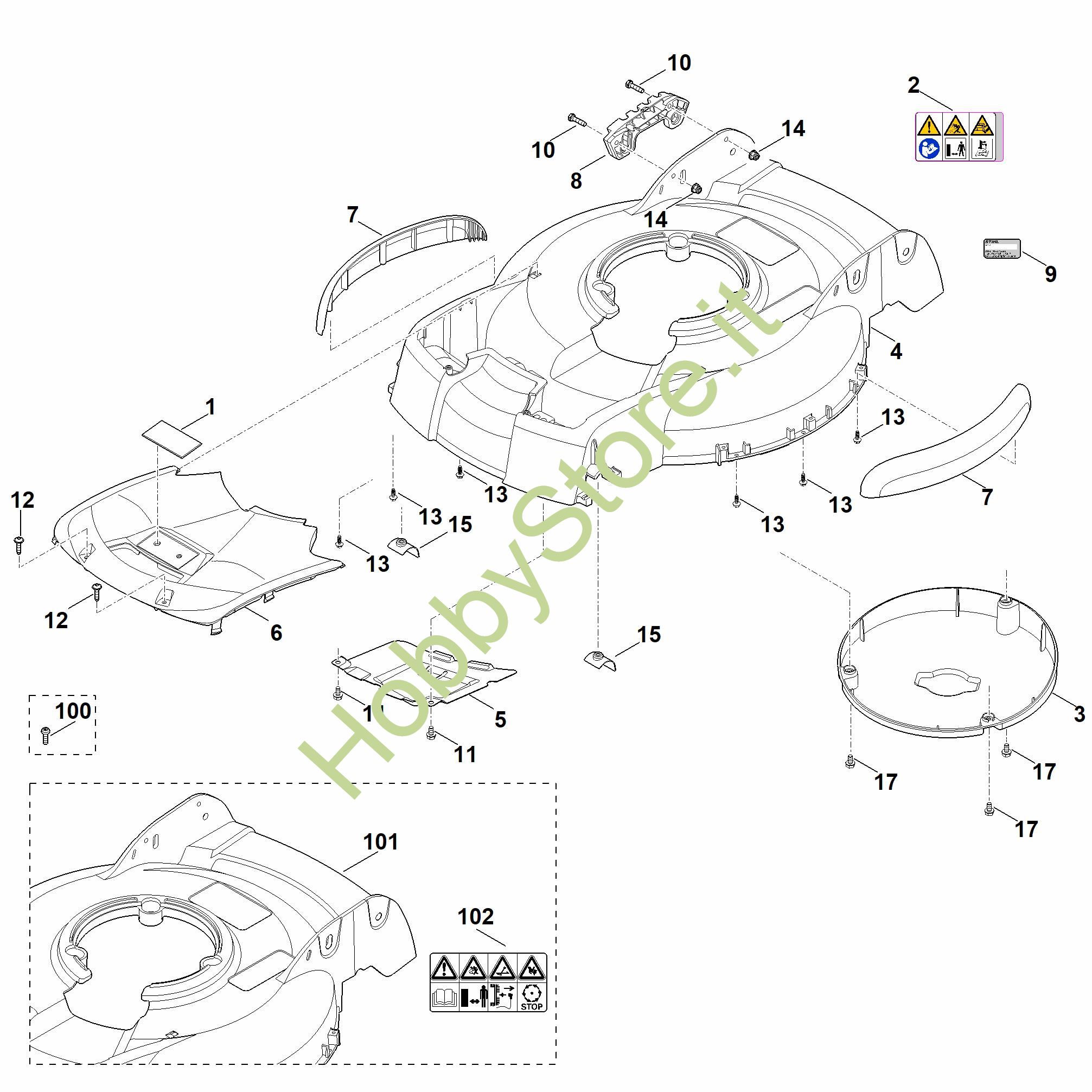 Ricambio Scocca compl. Tosaerba (RM) RM 4.0 RT STIHL Contiene anche i ricambi nr. da 102
