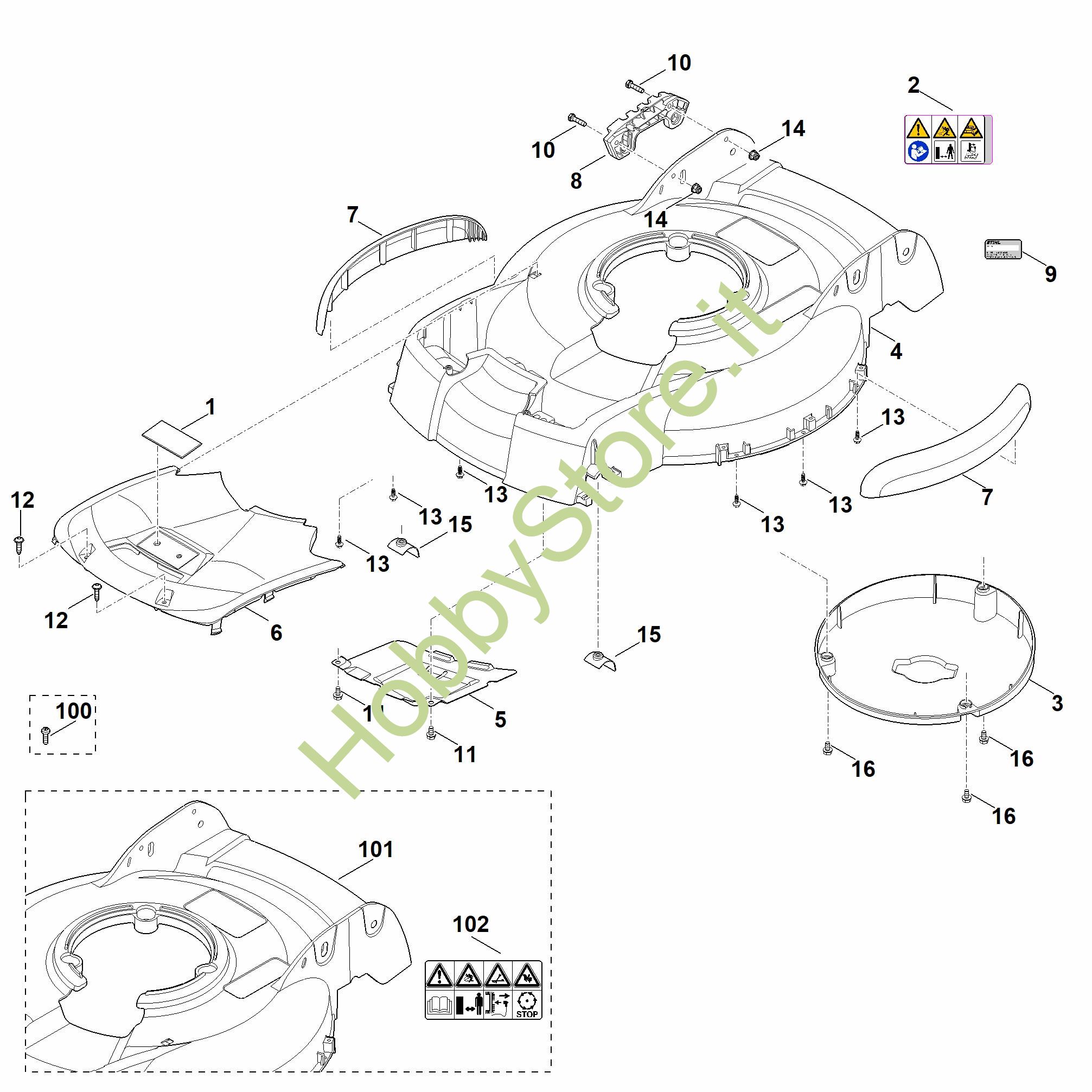 Ricambio Scocca compl. Tosaerba (RM) RM 4.0 RV STIHL Contiene anche i ricambi nr. da 102