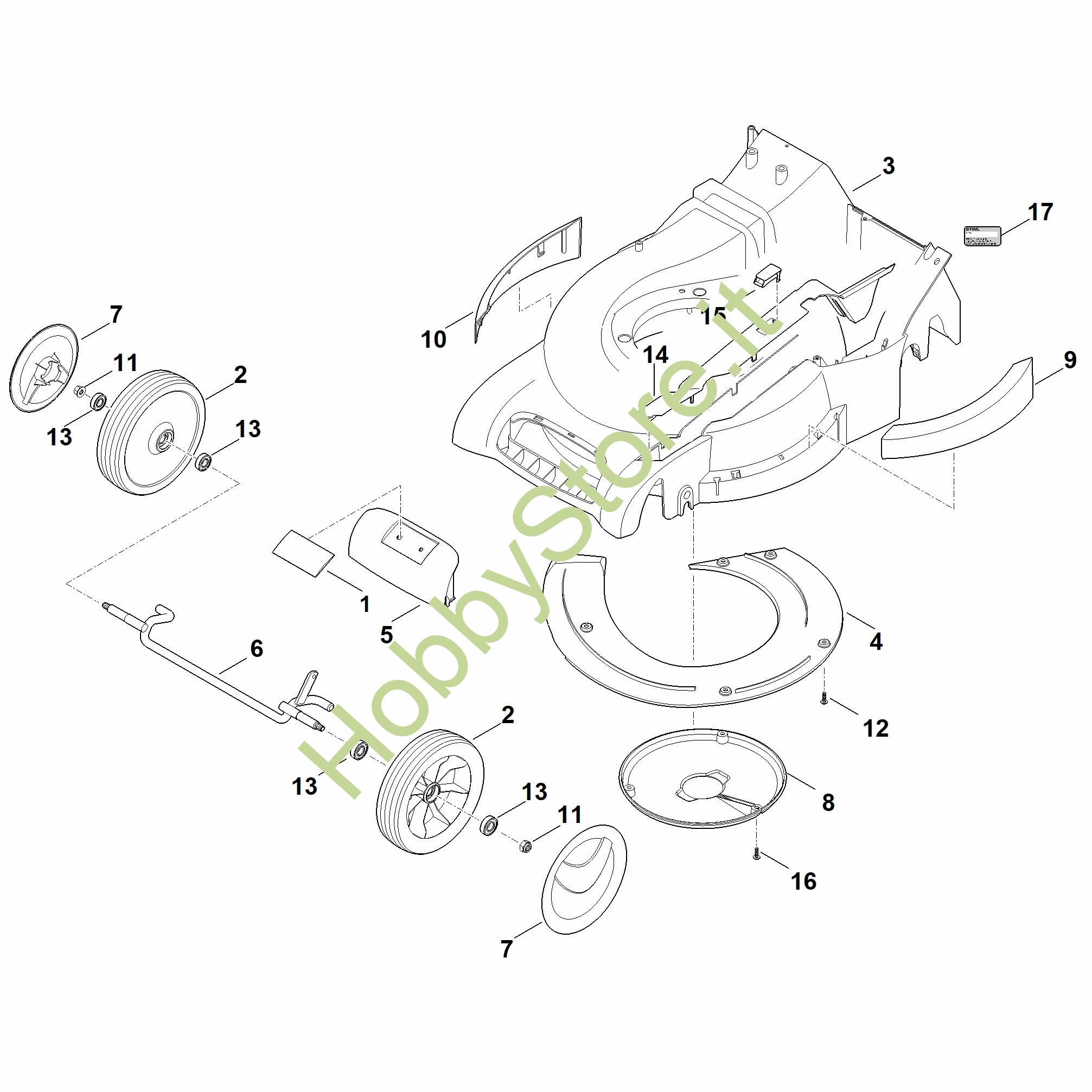 Ricambio Copertura Tosaerba (RM) RM 545.1 VE STIHL Contiene anche i ricambi n. 15