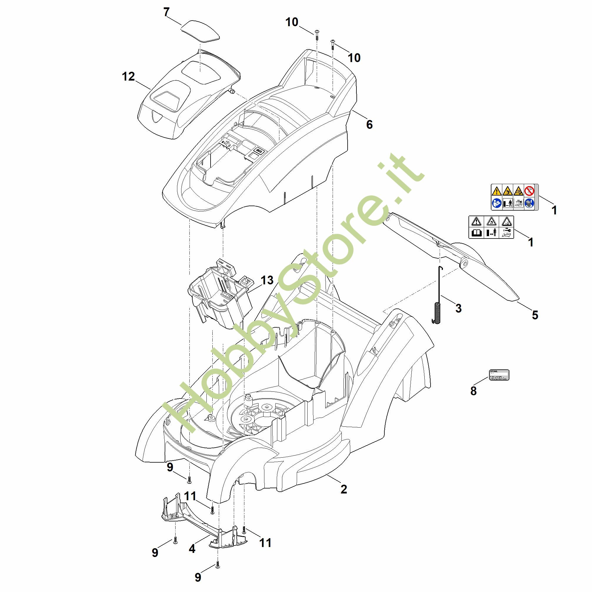 Ricambio Cofano motore Tosaerba a batteria (RMA) RMA 339.0 C STIHL Contiene anche i ricambi n. 12