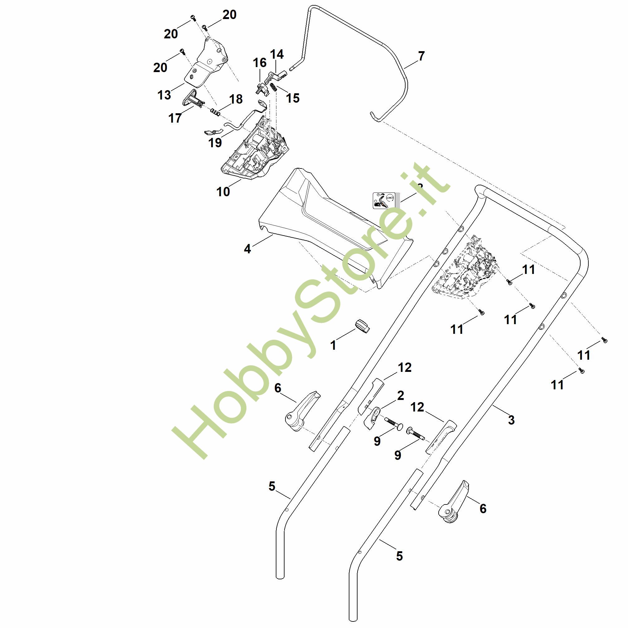 Ricambio Alloggiamento interruttore compl. Tosaerba a batteria (RMA) RMA 443.2 STIHL Contiene anche i ricambi nr. 10 e da 13 a 20