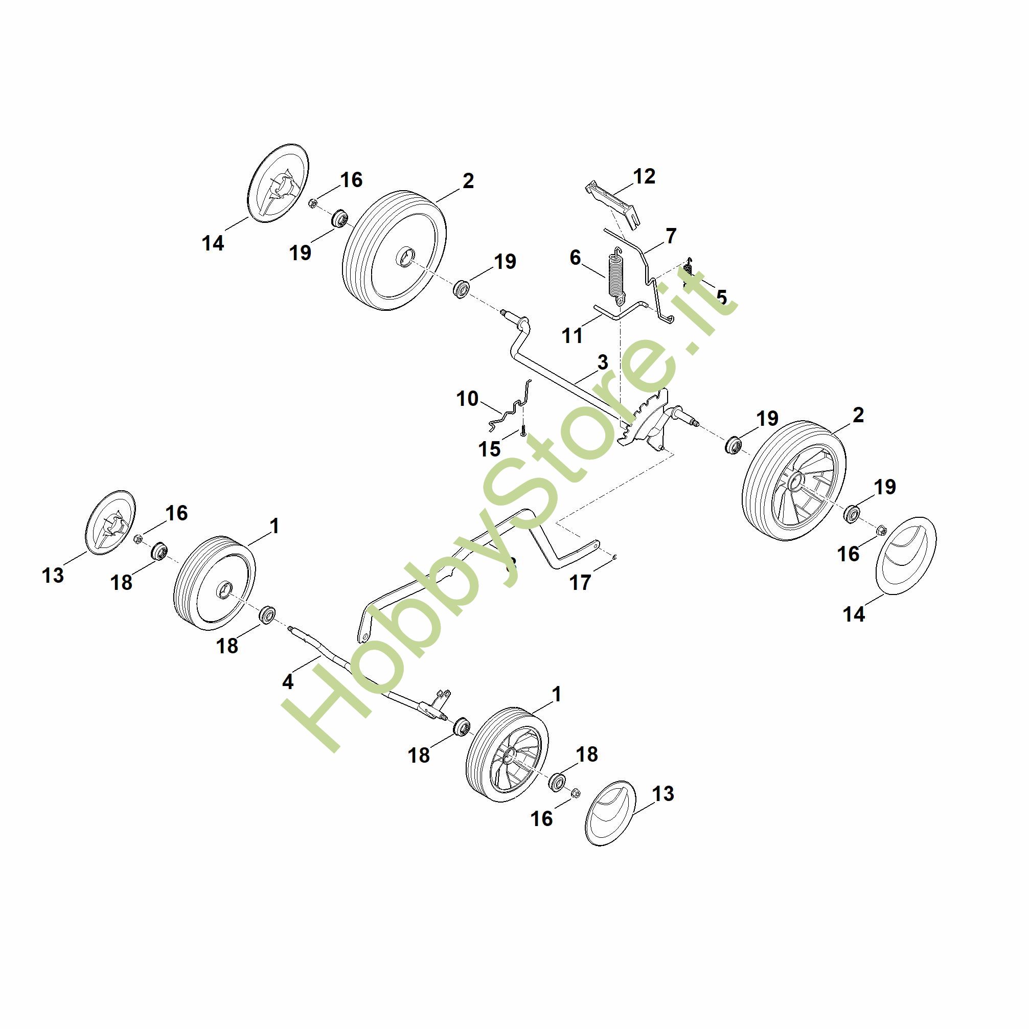 Ricambio Ruota Tosaerba a batteria (RMA) RMA 443.2 C STIHL Contiene anche i ricambi n. 19