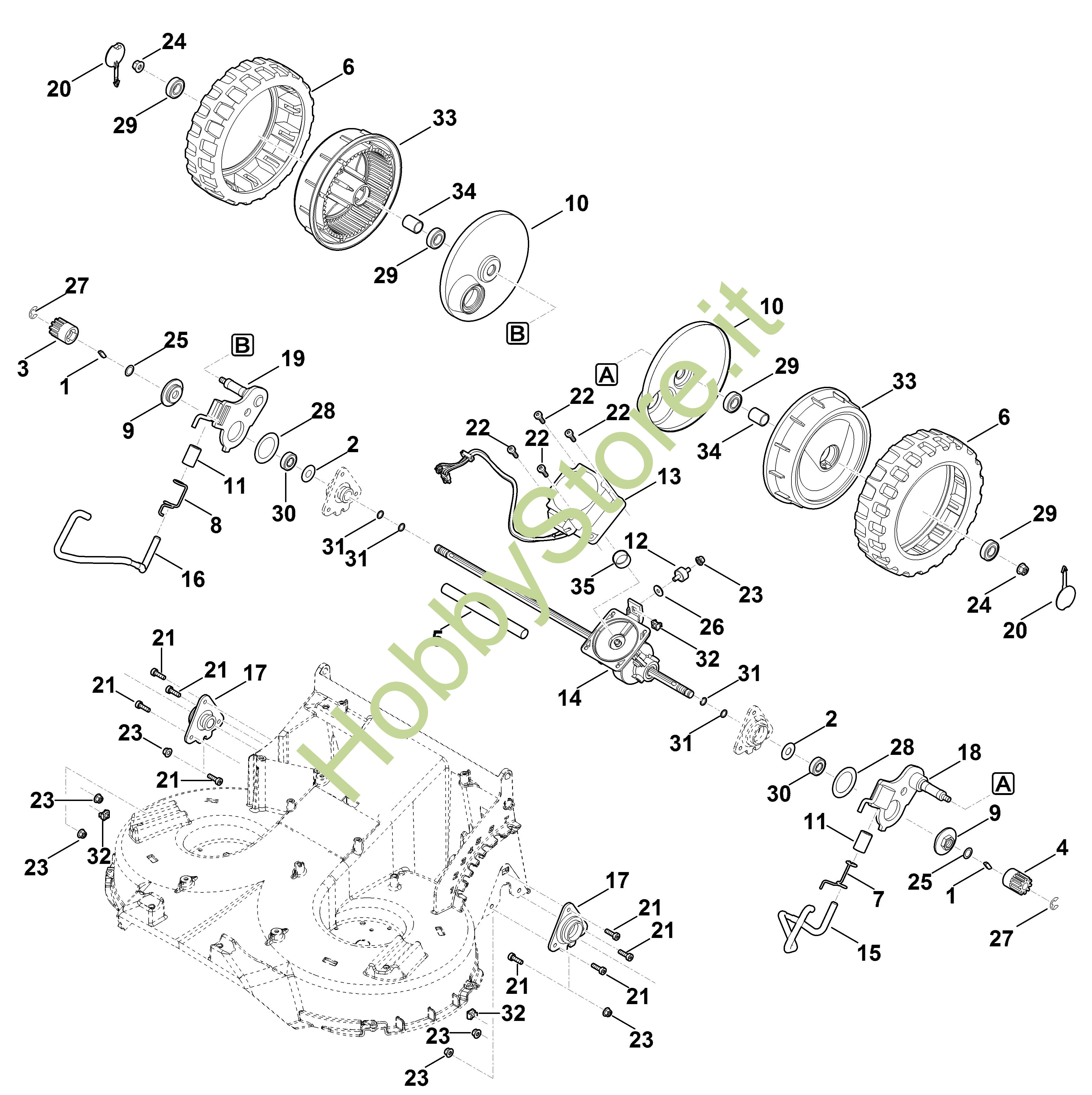 Ricambio Ruota compl. Tosaerba a batteria (RMA) RMA 765.0 V STIHL Contiene anche i ricambi nr. 6,10,29,33,34